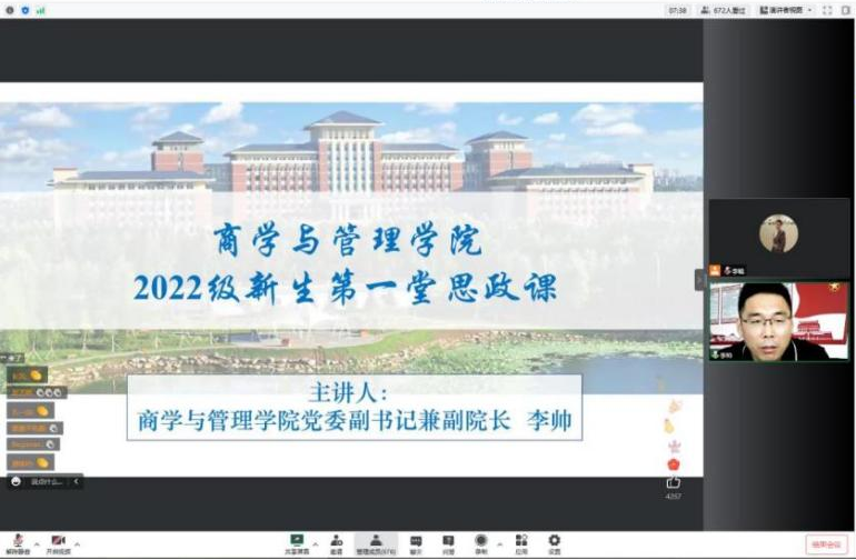 党委副书记兼副院长李帅老师主讲。按照疫情防控要求,全体2022级新生线上参加。