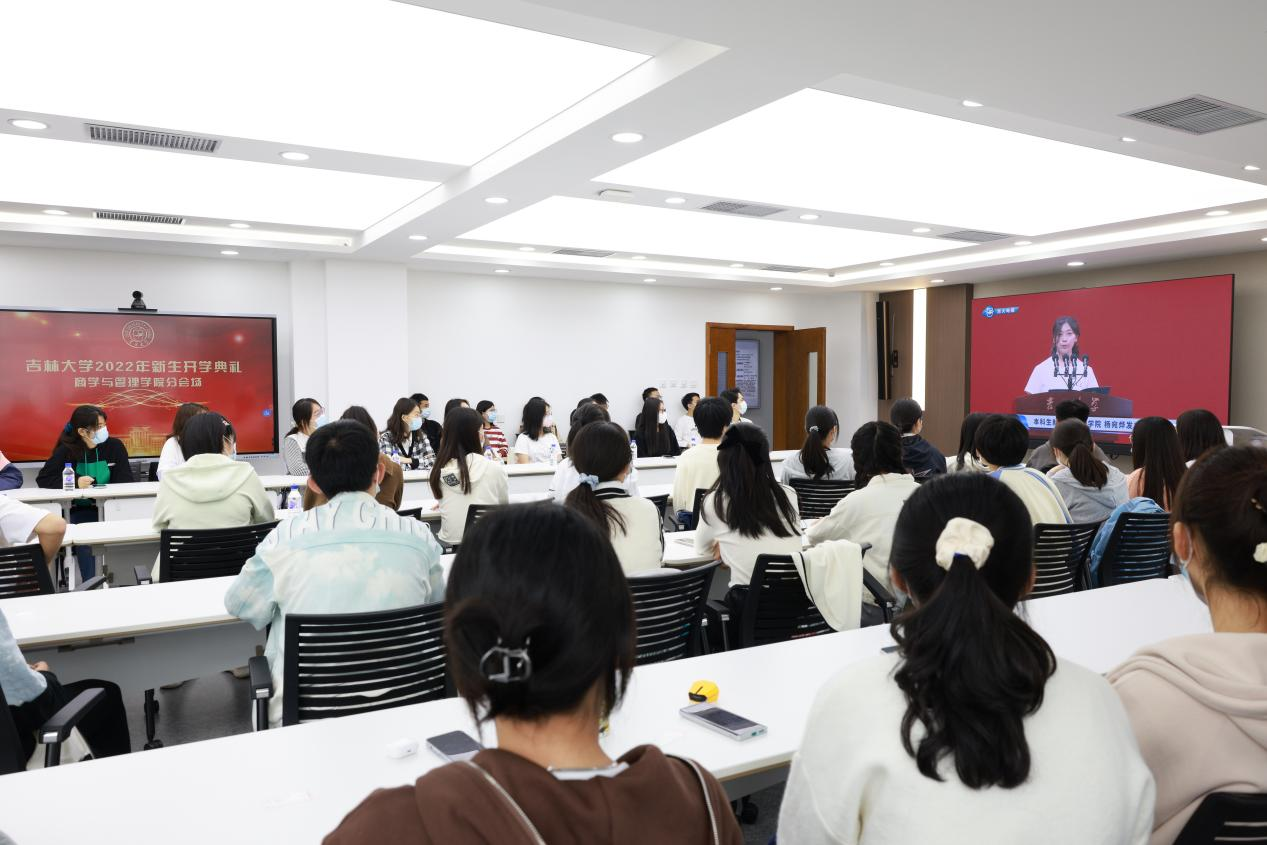 随后,本科生新生代表杨宛烨、硕士研究生新生代表郭丰硕、博士研究生代表迟茜文、教师代表任雷教授、校友代表王巍分别发言。教师代表任雷教授对同学们提出了三点建议,一是志存高远、勤学善思,二是老实做人、踏实做事,三是直面挑战、突破自我。他愿全体吉大学子始终不忘初心,砥砺前行,成长为既有家国情怀和全球视野,又有卓越学习力、创新力和行动力的顶尖人才,不负韶华,不负时代,不负人民!回首曾经吉大岁月,校友代表王巍与同学们分享三个方面的感悟。第一,满怀热爱地投入到学习知识中去,带着责任感读书实践,增长才干。第二,脚踏实地地投入到科学研究中去,带着使命感探索未知,追溯本源。第三,敢于担当地投入到祖国和人民的事业中去,带着自豪感坚定自信、自主创新。