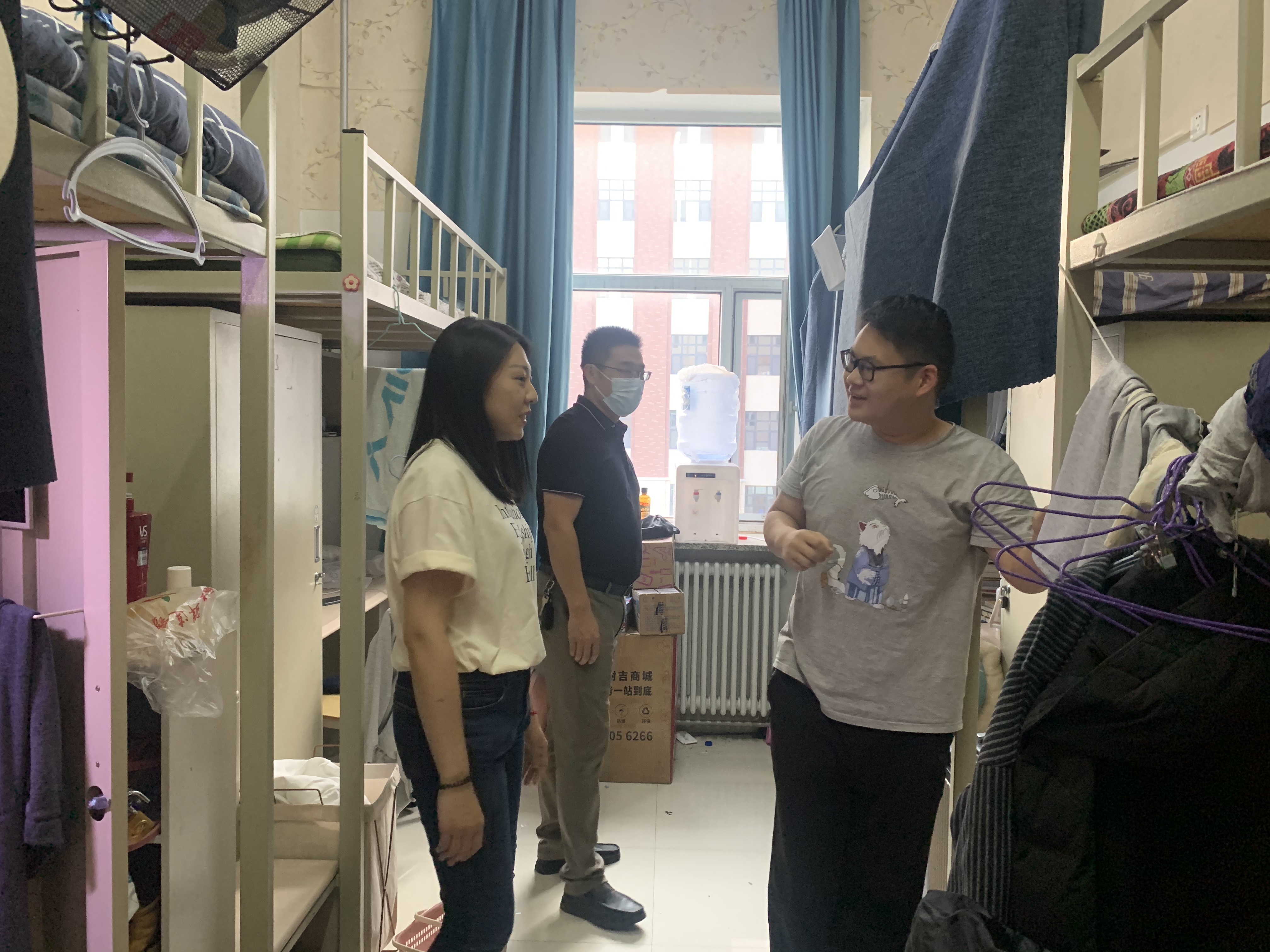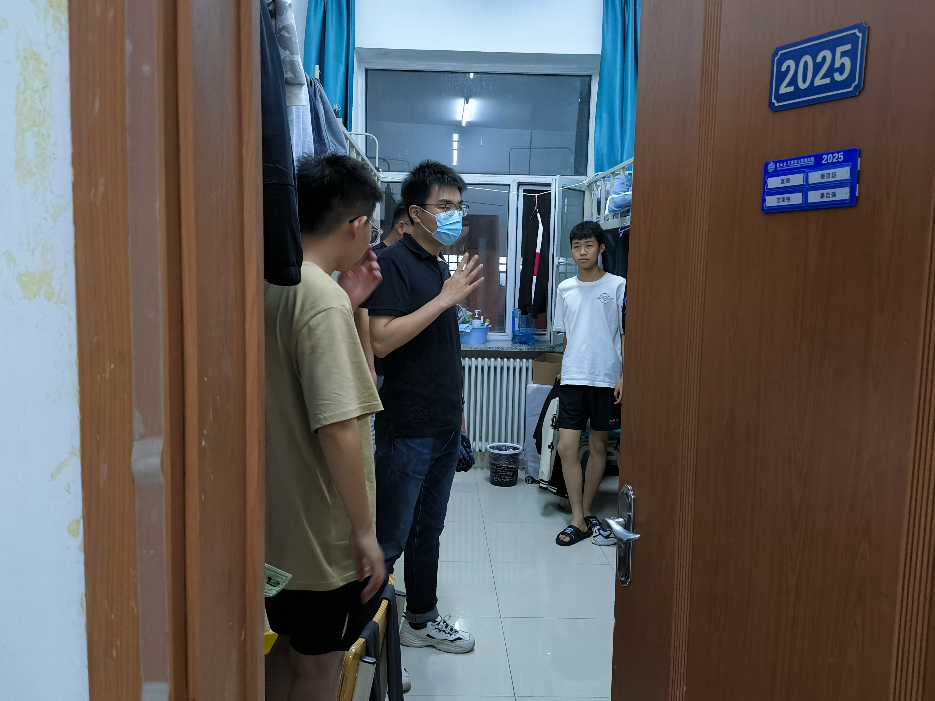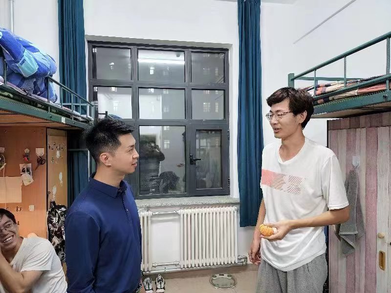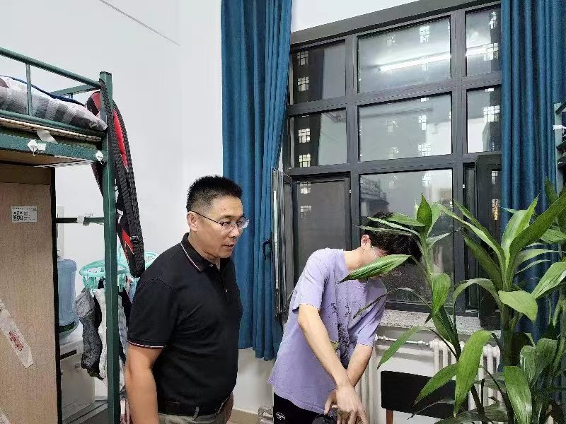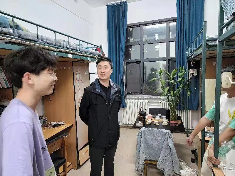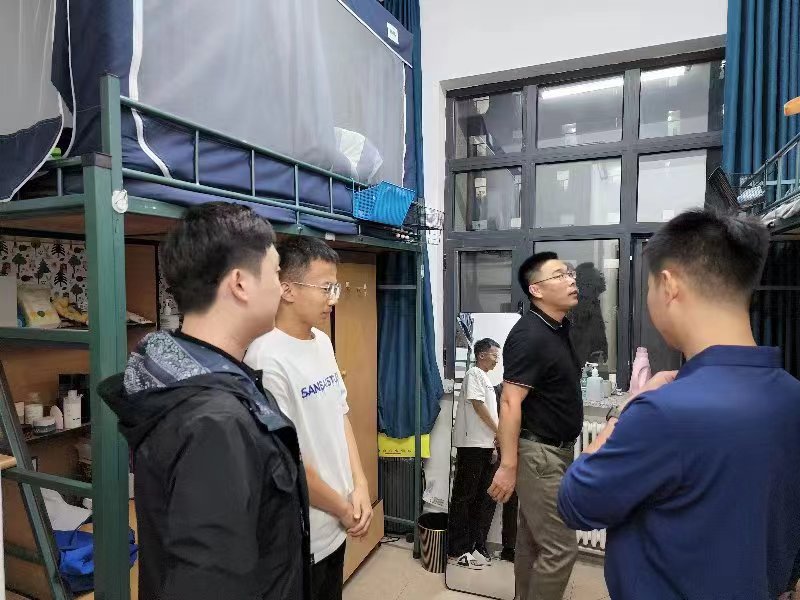 党委副书记兼副院长李帅,2021级辅导员丁越,2020级辅导员刘天目、禚传阳,2019级辅导员陈卓、刘翔宇及2022级辅导员李毓、贾奇达深入学生寝室,开展公寓安全检查专项行动,扎实完善安全细节,确保校园安全。
