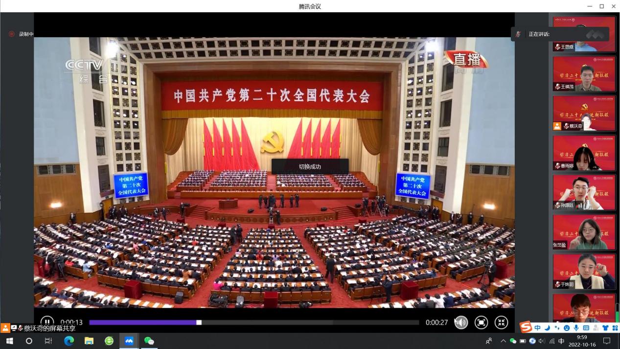 各本科生党支部集体观看党的二十大开幕式盛况,老师和同学们怀着无比激动的心情和崇高的敬意观看开幕式,认真聆听大会报告,学习习近平总书记的报告精神。