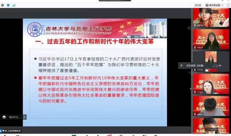 党委关于学习宣传贯彻二十大精神的工作部署,深刻领会二十大报告的思想、内涵、部署、要求,切实把思想和行动统一到党的二十大精神上来,党委学生工作部统一部署、精心策划,于2022年10月29日线上召开党的二十大精神系列宣讲活动第一讲,由马克思主义冰球突破