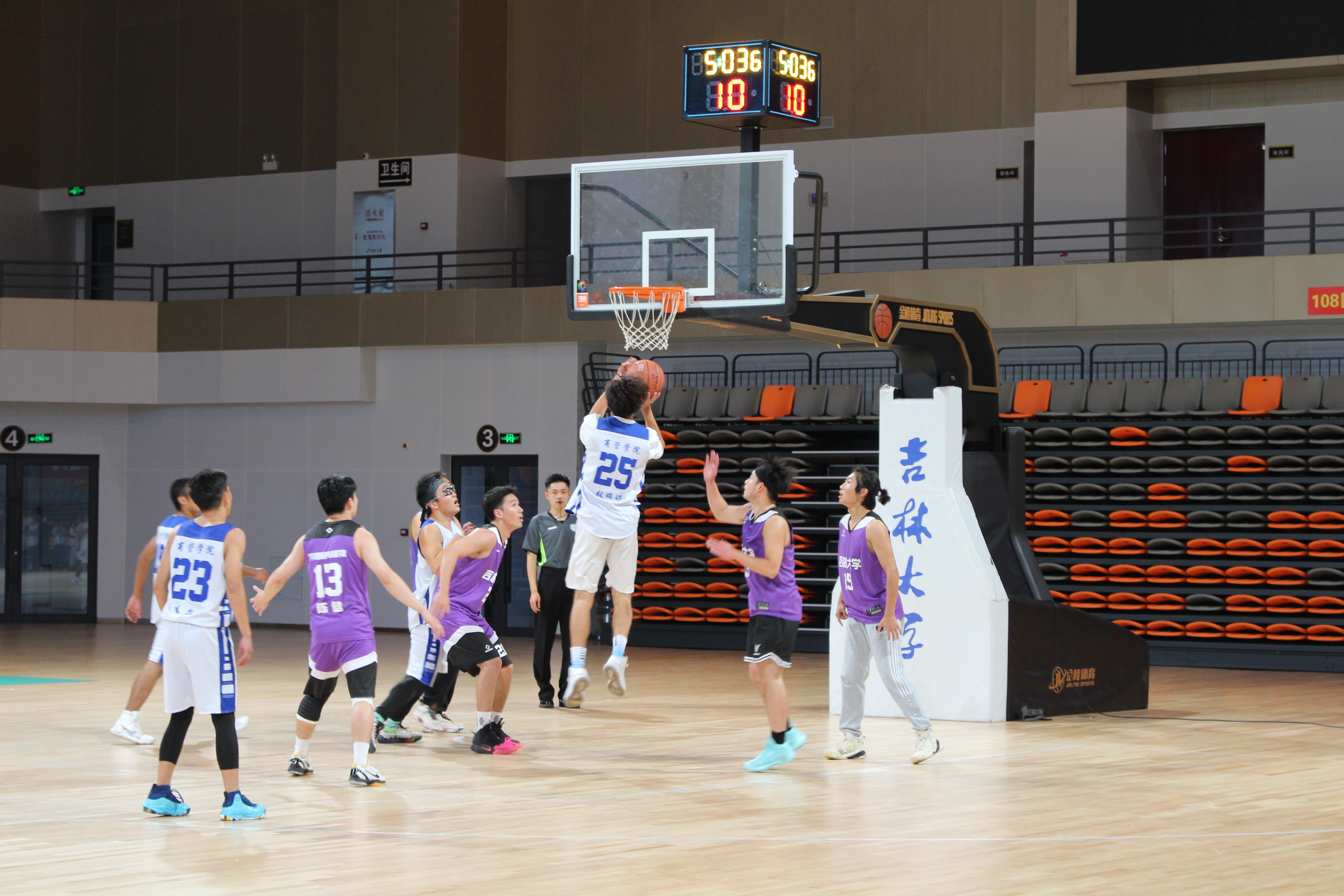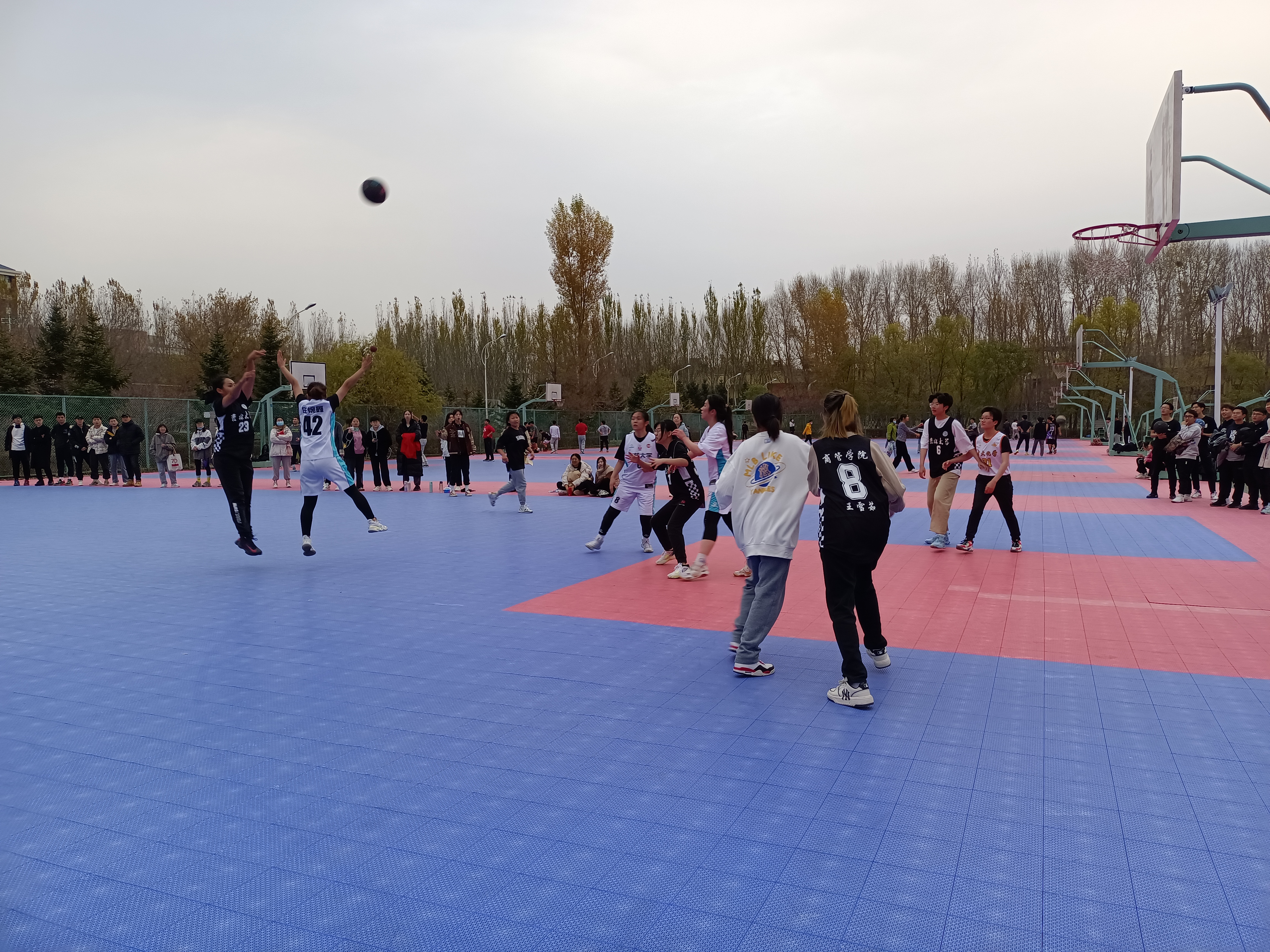 为使比赛顺利进行,各组织提前安排赛程,并布置好比赛场地。商管学子对本次篮球比赛十分重视,全心投入,全力以赴,比赛正式开始前,各队员提前到达场地做好热身等赛前准备。随着裁判员鸣笛,比赛正式开始。发球、运球、传球、断球、扣篮--双方运动员都拼尽全力,纷纷拿出了看家本领,赛场气氛瞬时紧张起来。球场外,观众们热情呐喊,为两个队伍加油助威;球场上,队员们奋勇拼搏,尽自己最大的努力占据优势,在赛场上留下了商管学子的青春风采!