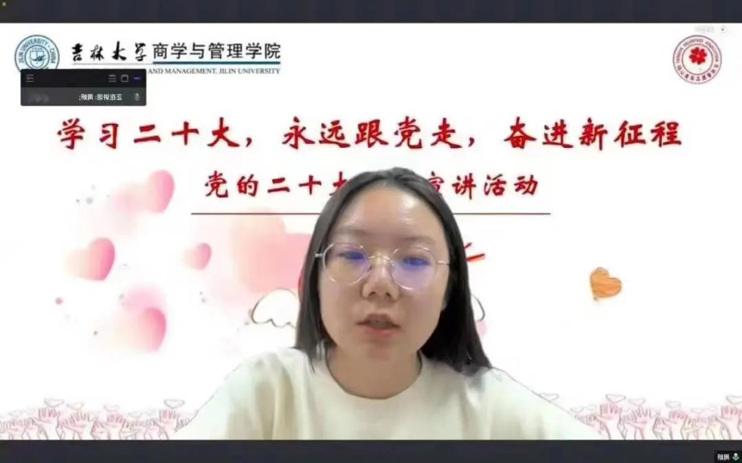 出席本次活动的学生宣讲代表分别有研究生宣讲代表周妍、桥宇航以及本科生宣讲代表赵芙、陈祝、罗小杰、白红蕾、勒鹏飞和田雨桐。宣讲代表们针对党的二十大精神,从六个基本模块以及两场演说出发,带领孩子们结合时代背景,体悟党的伟大思想。