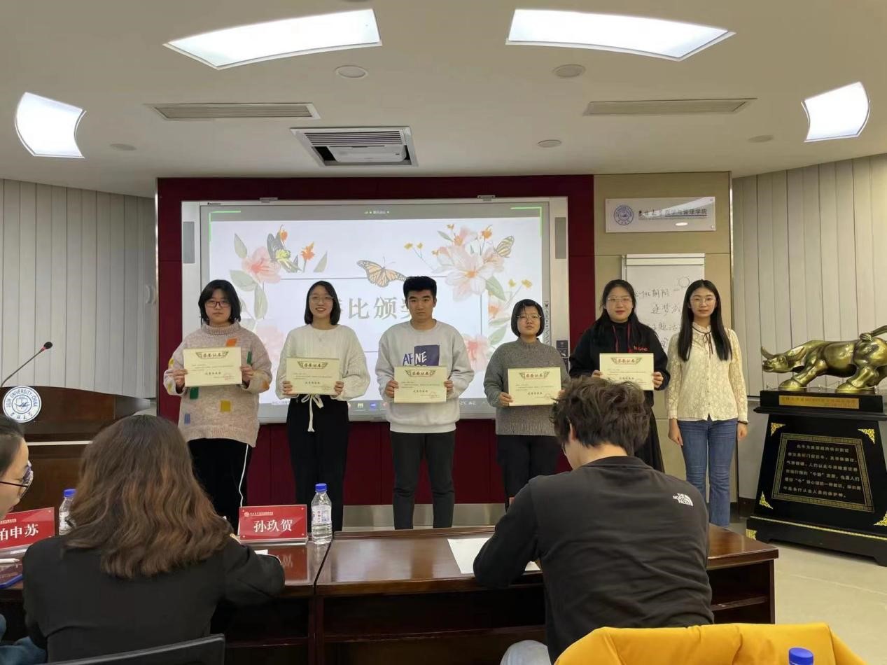 本次活动分为两个赛道——海报赛道和微电影赛道。经过前期的筛选,最终有10份优秀海报作品和10份优秀微电影作品进入决赛答辩阶段。答辩活动伊始,心理部干事组织同学们通过线上线下两种方式观看本次活动。在活动现场,入围微电影优秀作品的班级答辩代表针对团队视频的创作灵感、主旨内涵、制作过程等方面进行了简要概述。各位选手都做好了充分的准备,展示过程也得到了观众和评委的认可,整个活动过程都十分轻松愉快。此外,在中场休息时,主持人与线上观众进行了直播互动,直播间的同学通过在聊天框发送指定口令参与抽奖。互动过程中,同学们都积极参与,活动气氛十分欢乐。随后,评委根据微电影作品质量及答辩人员现场表现情况等方面对优秀作品团队进行打分,经过最后核算,在微电影赛道中评选出一个一等奖,两个二等奖和三个三等奖。最后,评委分别为两个赛道的优秀作品获奖团队颁发了奖状,并合影留念。本次活动不仅锻炼了同学们的设计、表演和创意等综合能力,也鼓励了同学们关注到隐藏在身边的种种心理问题,如社恐、内耗、拖延症、奶嘴娱乐等负面状态。这些问题在大学生群体中经常出现,却常常被人忽视,这种现状也在同学们之间引发了强烈的共鸣与思考。