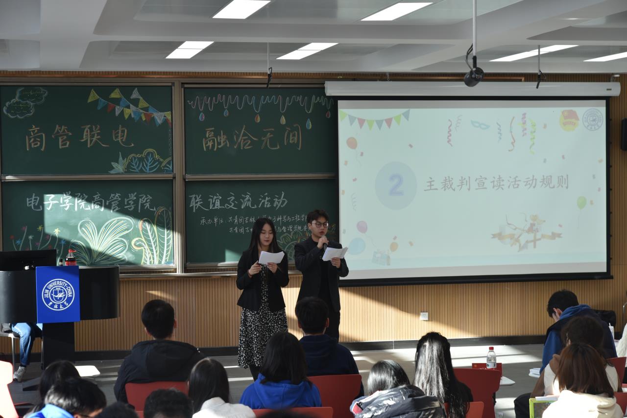 活动进行时,同学们积极参与各种游戏环节,其中有轻松愉悦的猜成语、紧张刺激的猜歌名等。在现场热烈的气氛中,同学们进行了多轮精彩比拼,充分发挥团队力量,全力以赴,互帮互助,认真完成每一轮的比赛。中场休息时,同学们准备的文艺表演精彩纷呈,充分展示了两院学生的风采。此次联谊活动让同学们深刻体会到团队的力量,培养了同学们团队协作的能力。