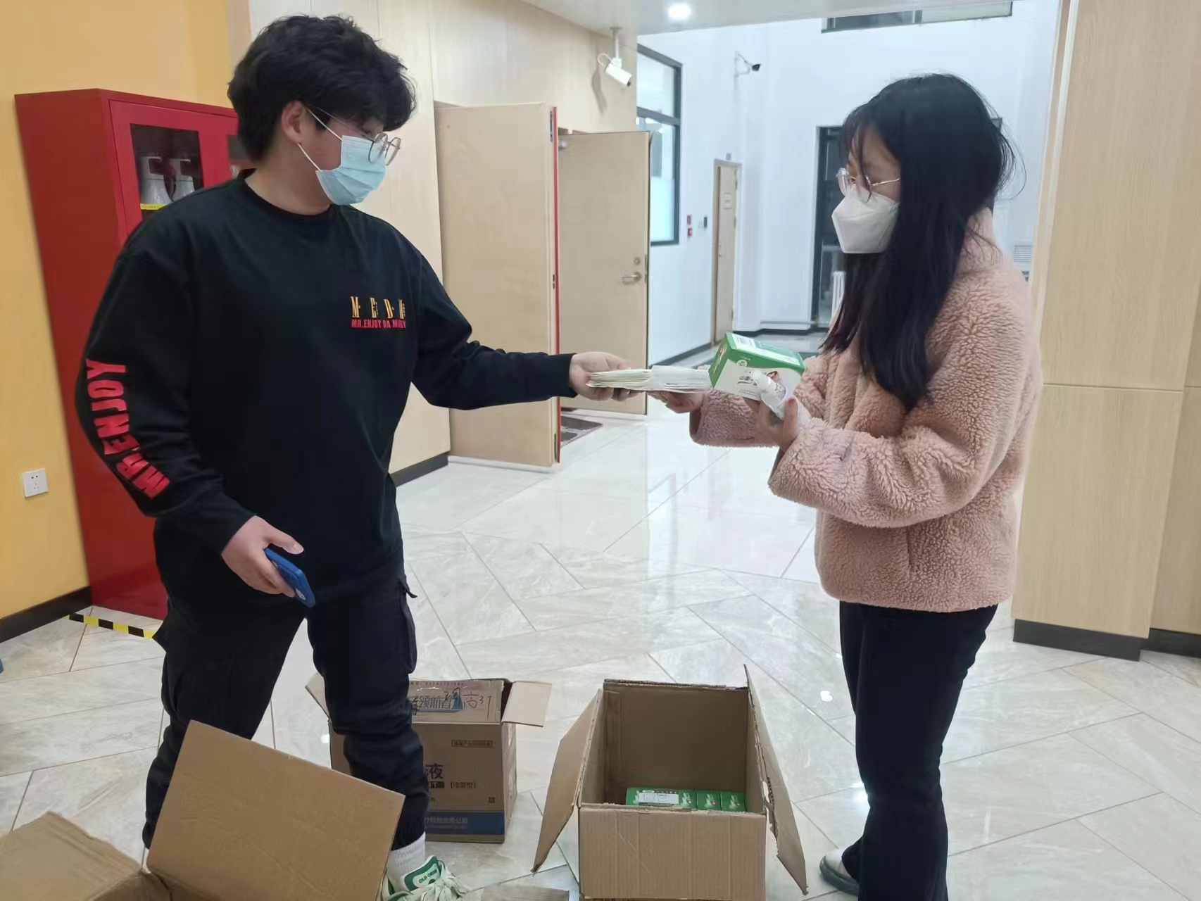 成功为在校学生筹措防疫物资,共筹集N95口罩4000余个、酒精喷雾800余瓶、消毒湿巾800余包。并逐一分发至各学子手中。