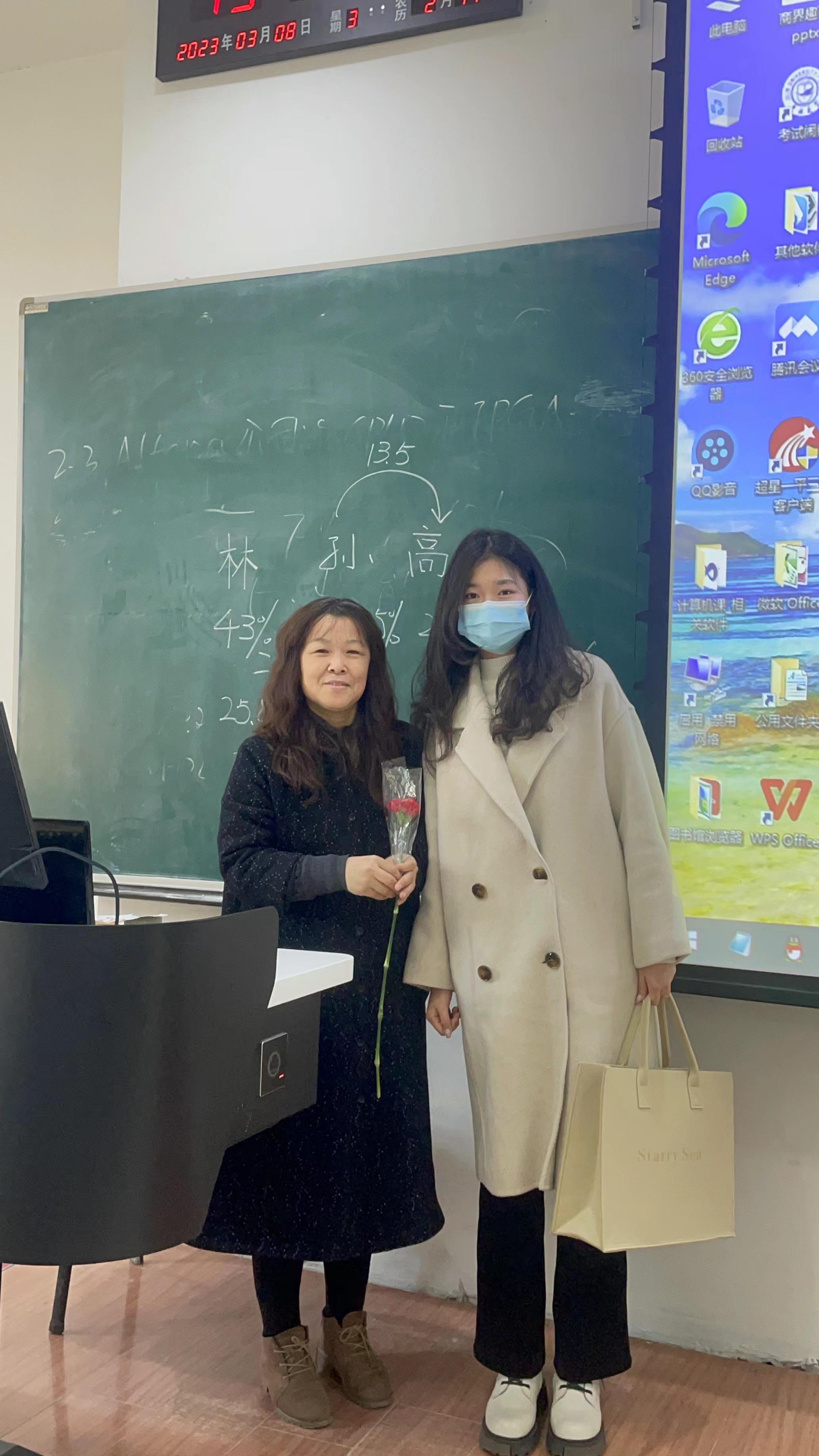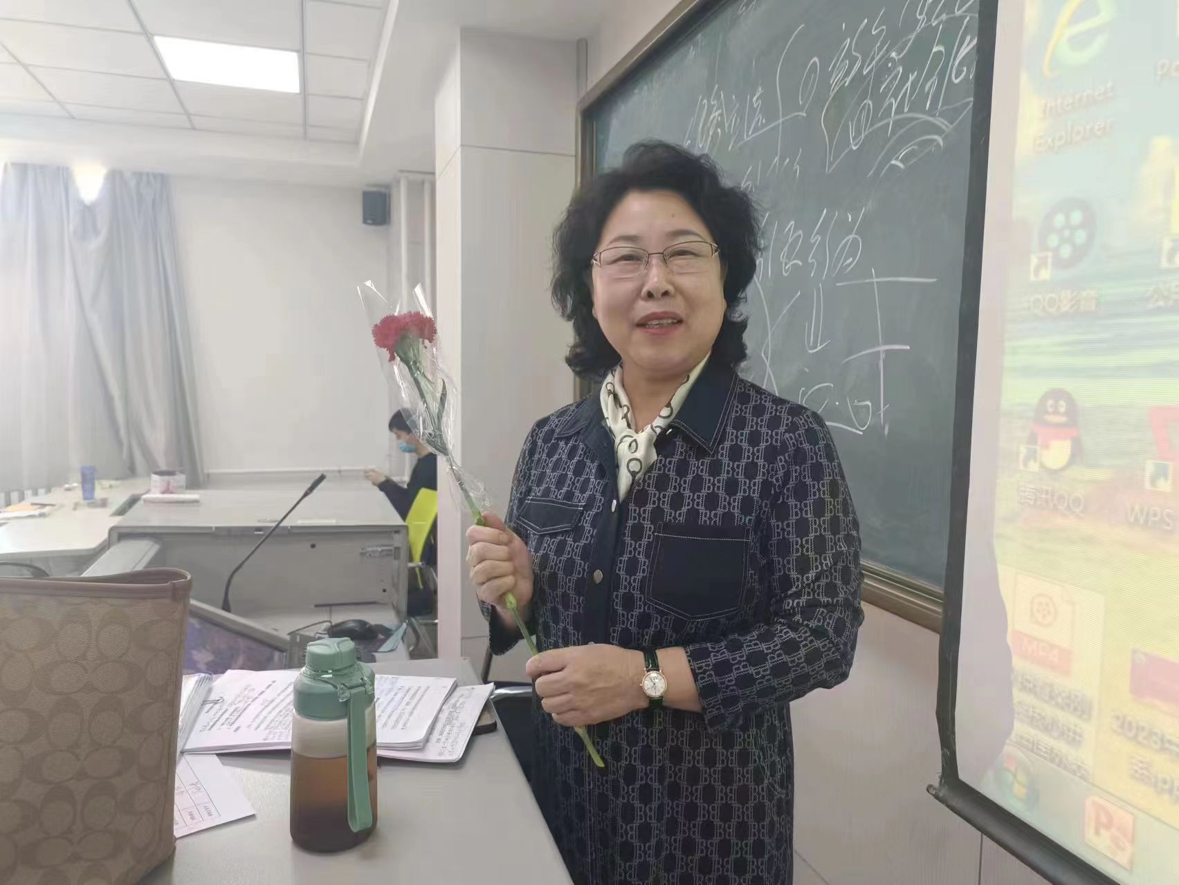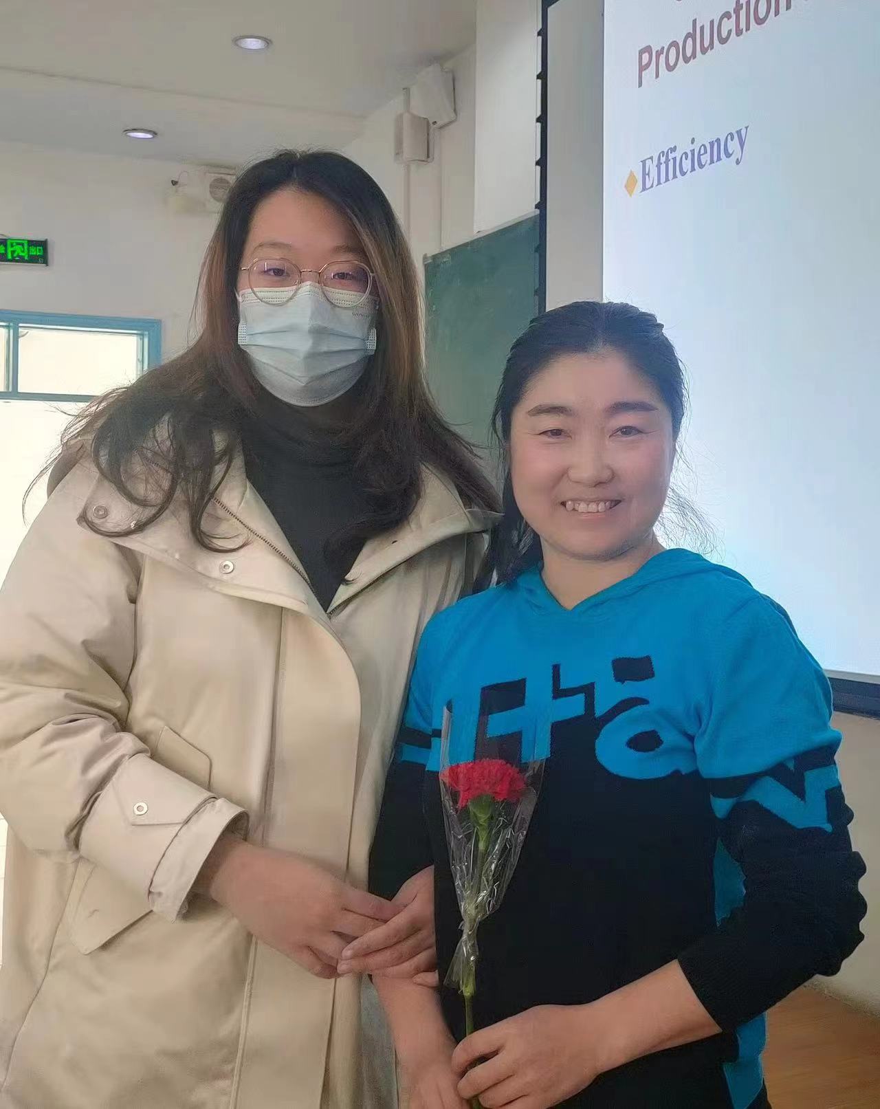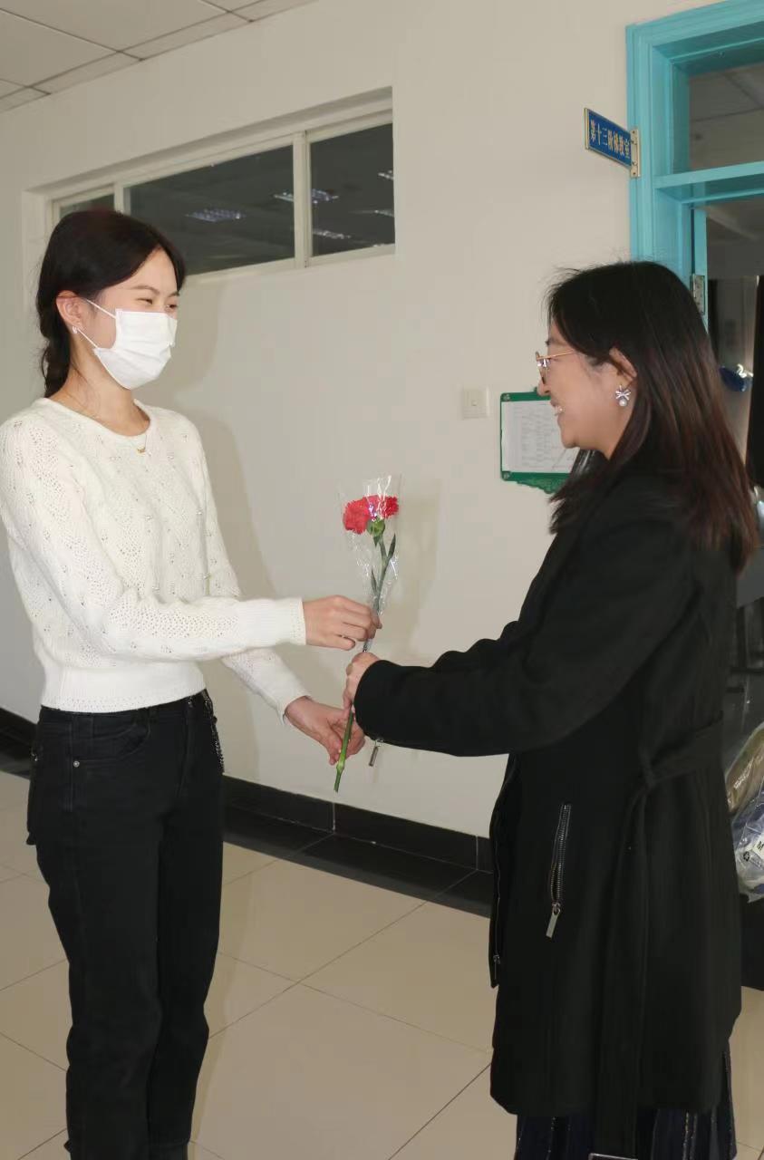 团委组织了为全体女性教职员工送上鲜花的活动。