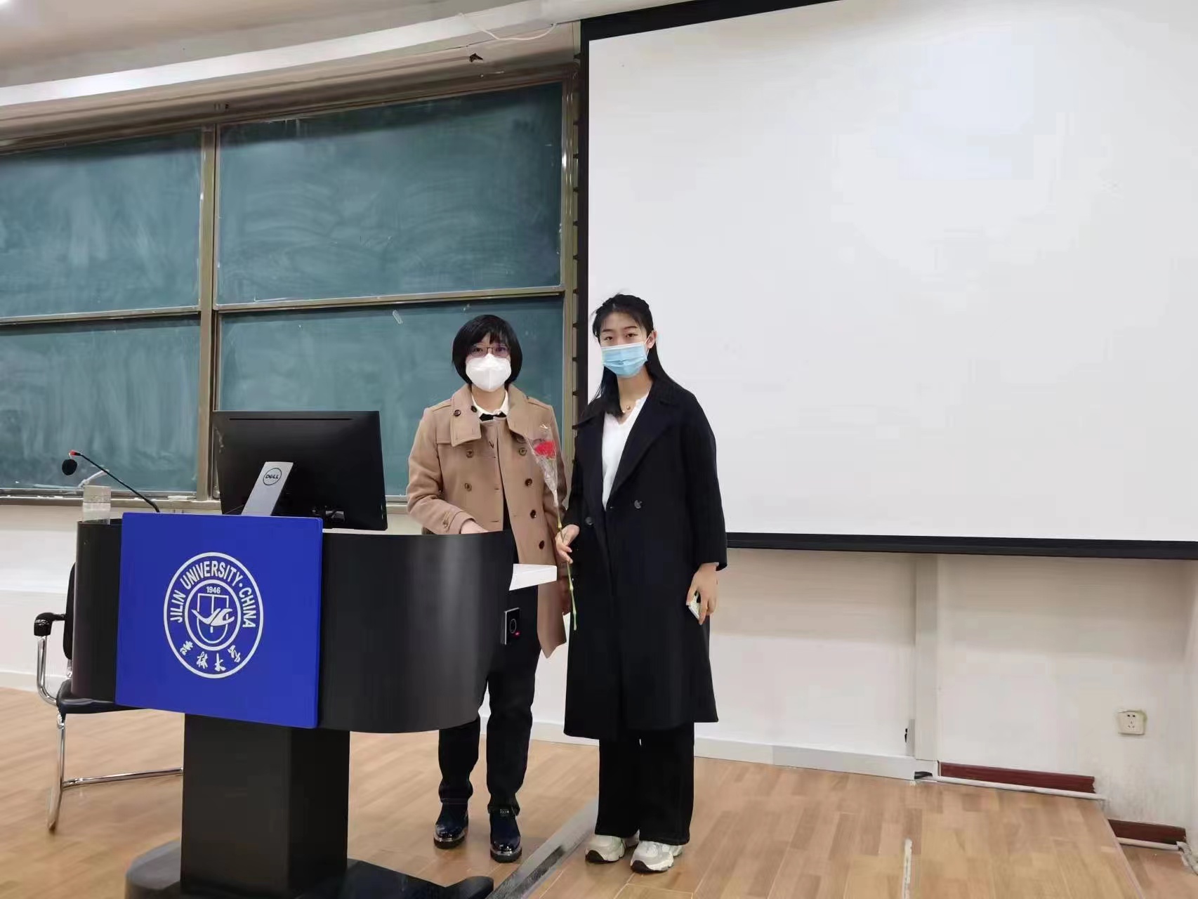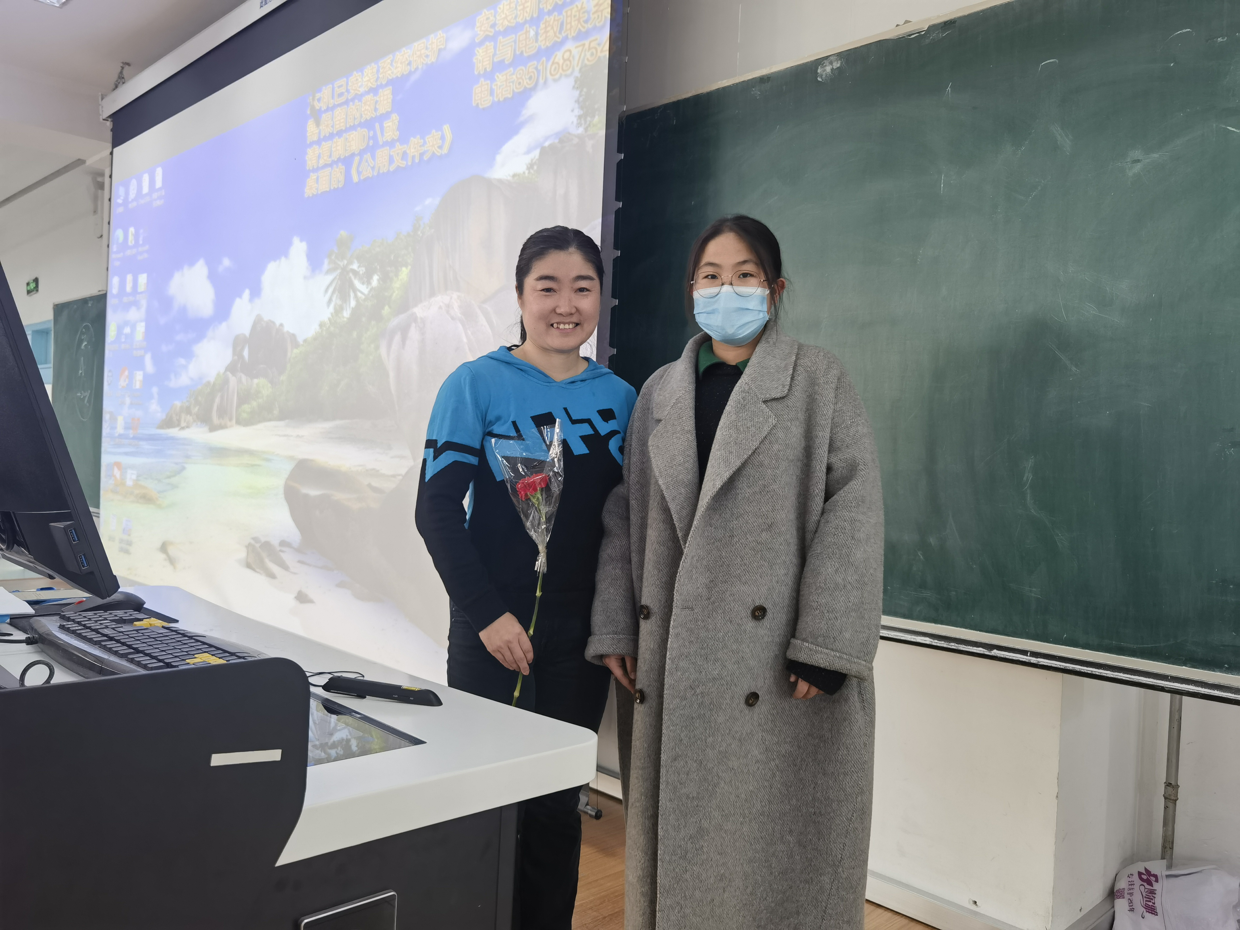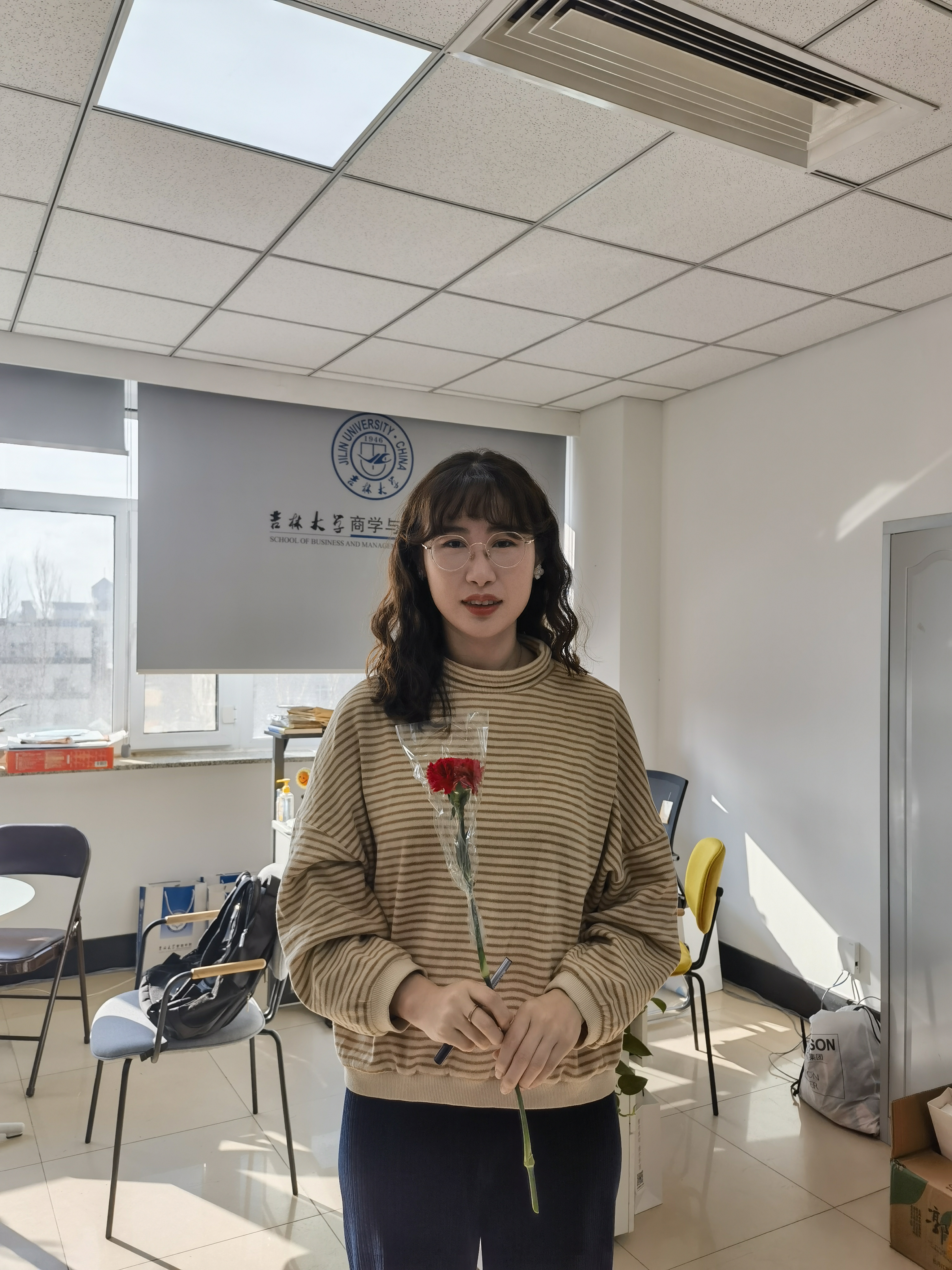 团委组织了为全体女性教职员工送上鲜花的活动。