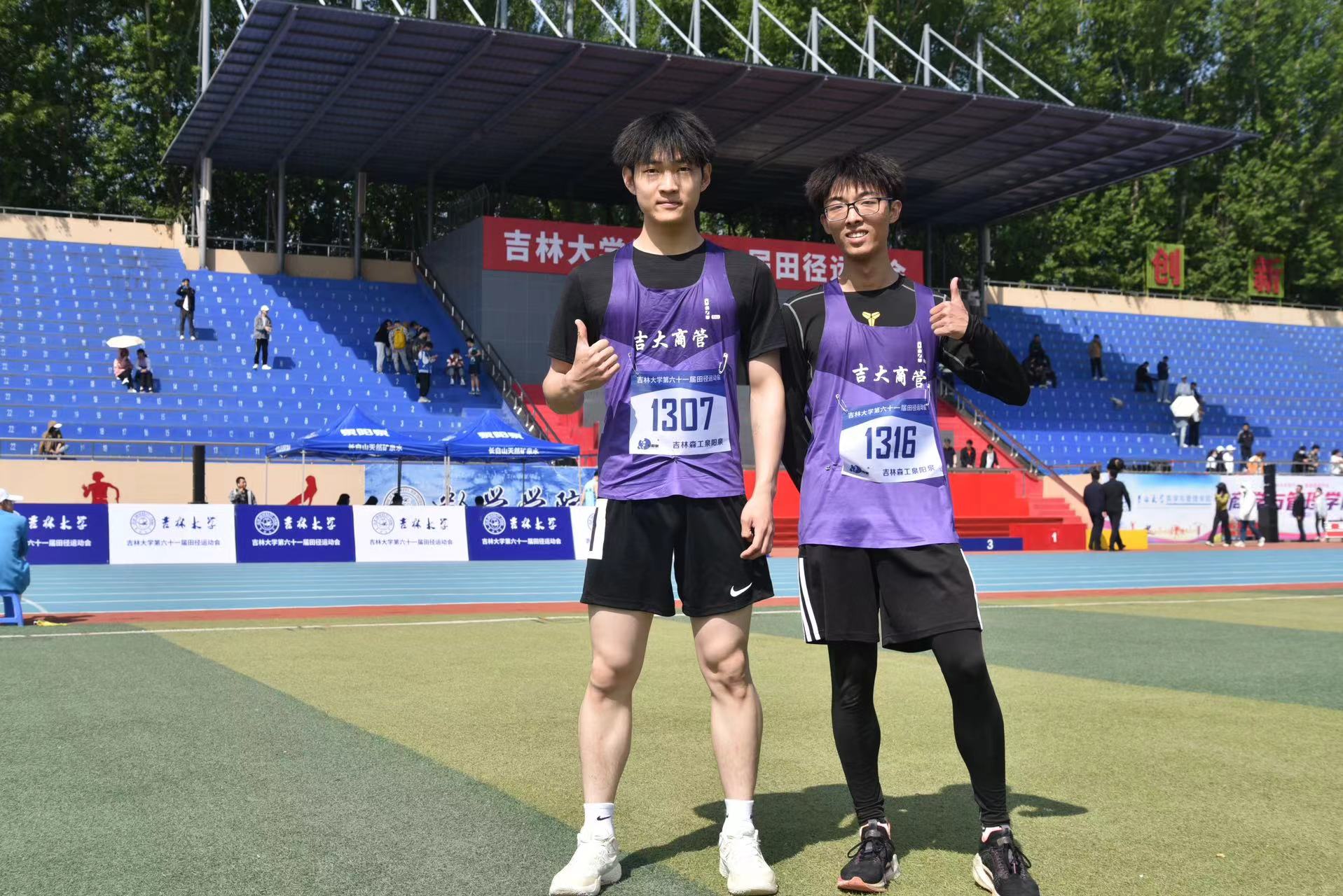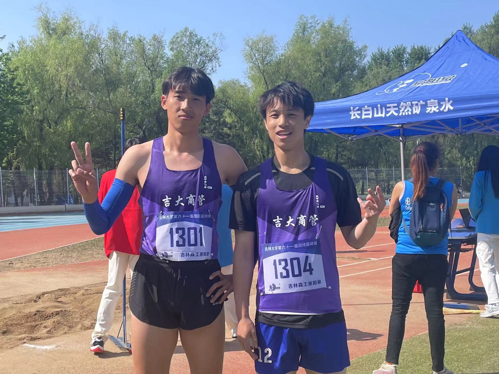 出战男子跳高决赛,王俊尧,王馨悦出战女子跳高及格赛。哨响,助跑,腾起,越杆,商管健儿动作连贯,一气呵成,像展翅飞翔的海燕,又像凌空直上的雄鹰,顺利完成了比赛。李剑鹏夺得第2名,阿克力亚·胡安江获得第14名。
