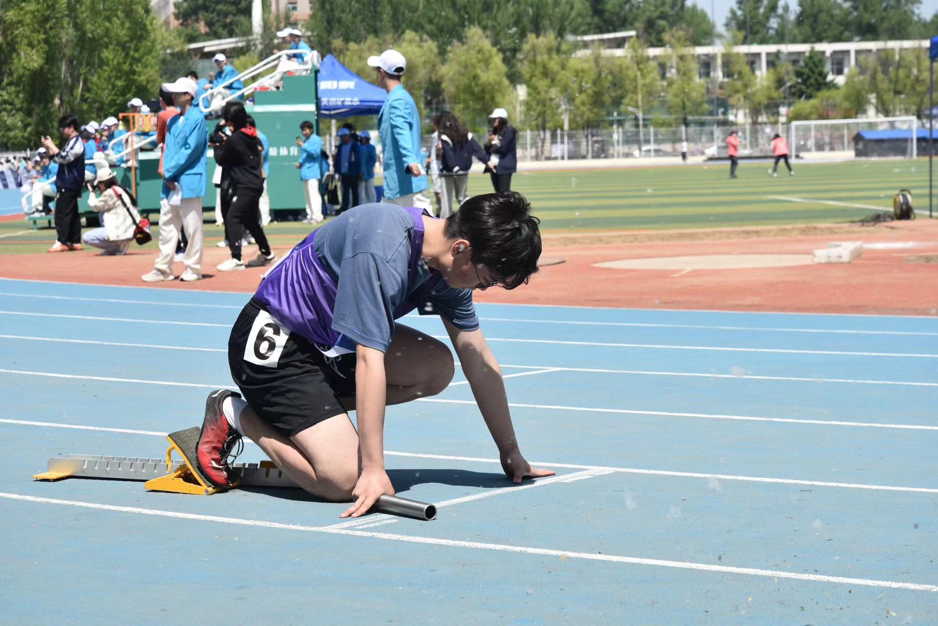 上午10:10分,教工男子200米决赛在田径场准时开始。董保宝老师代表冰球突破