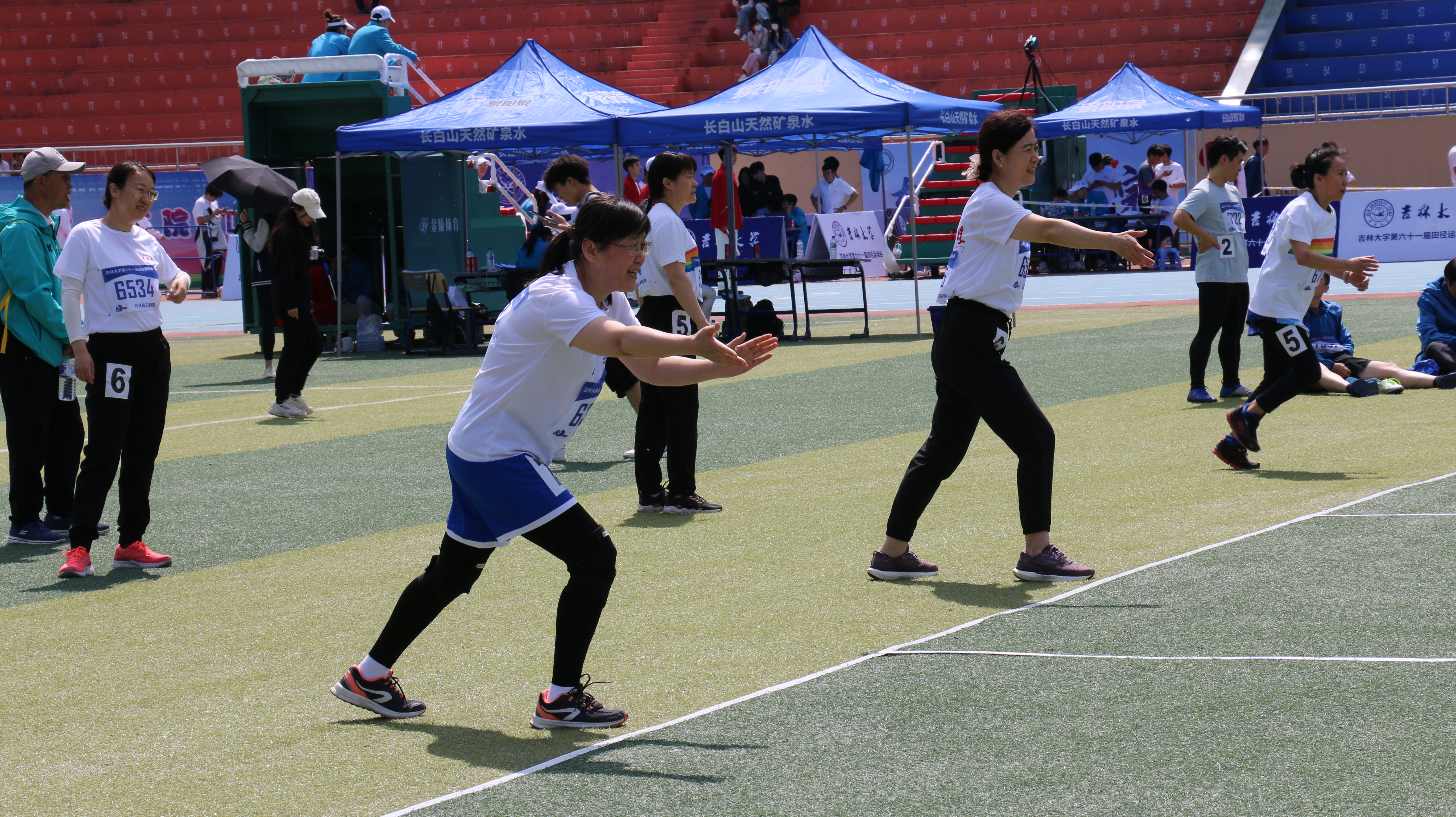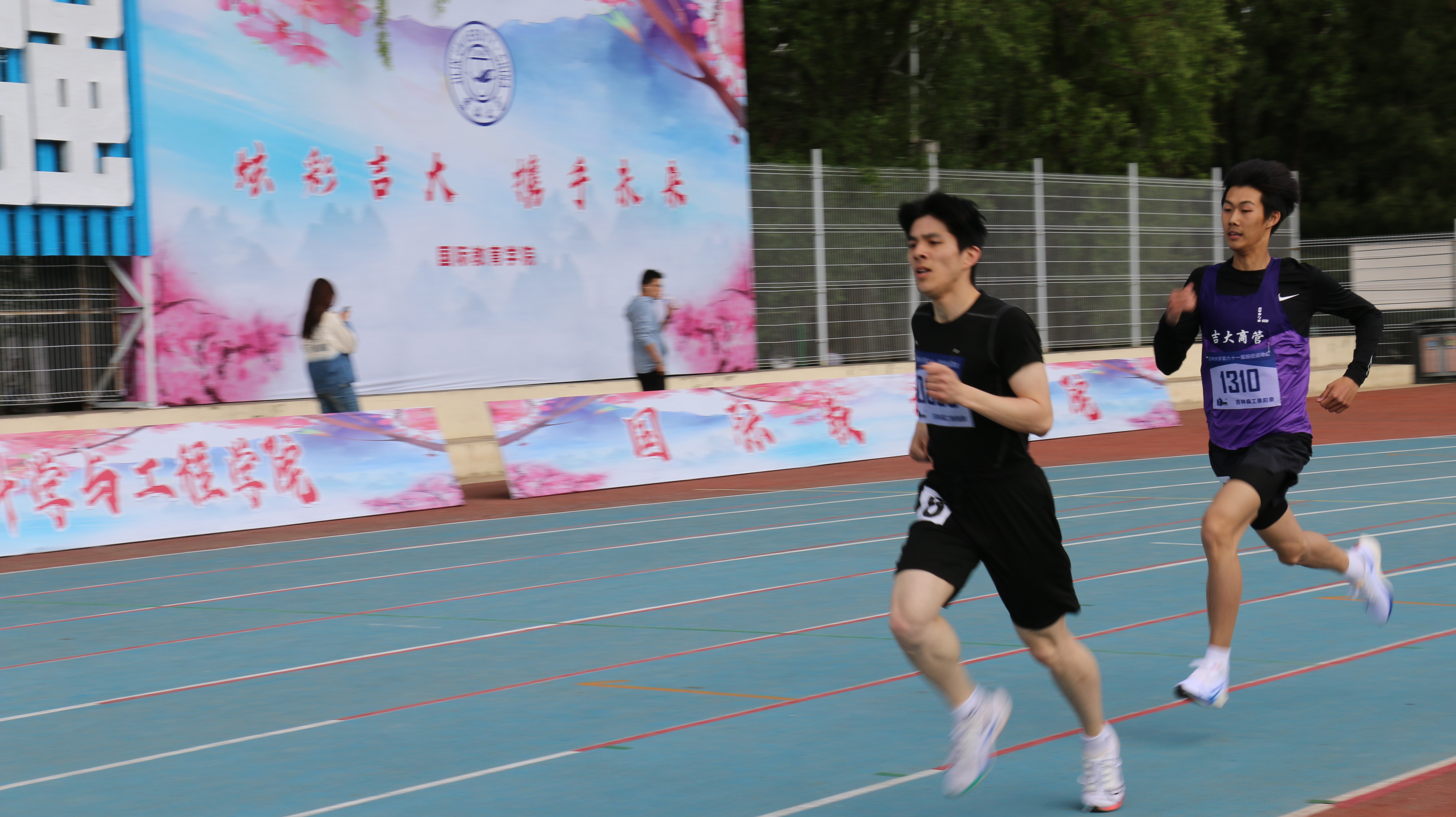 在8*100米迎面接力决赛的赛场上,各位商管冰球突破