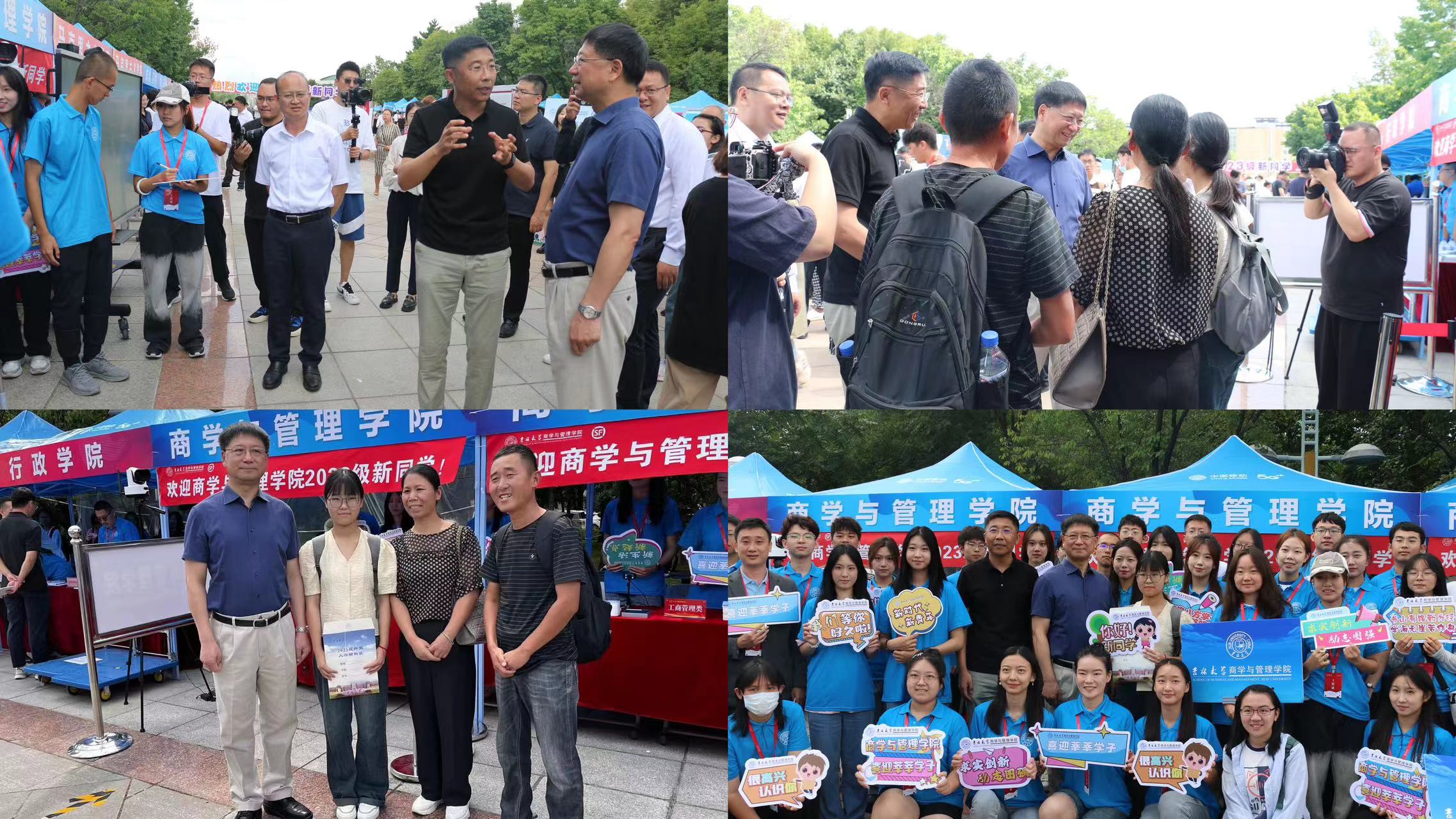 迎新点,看望迎新志愿者及2023级报到新生。