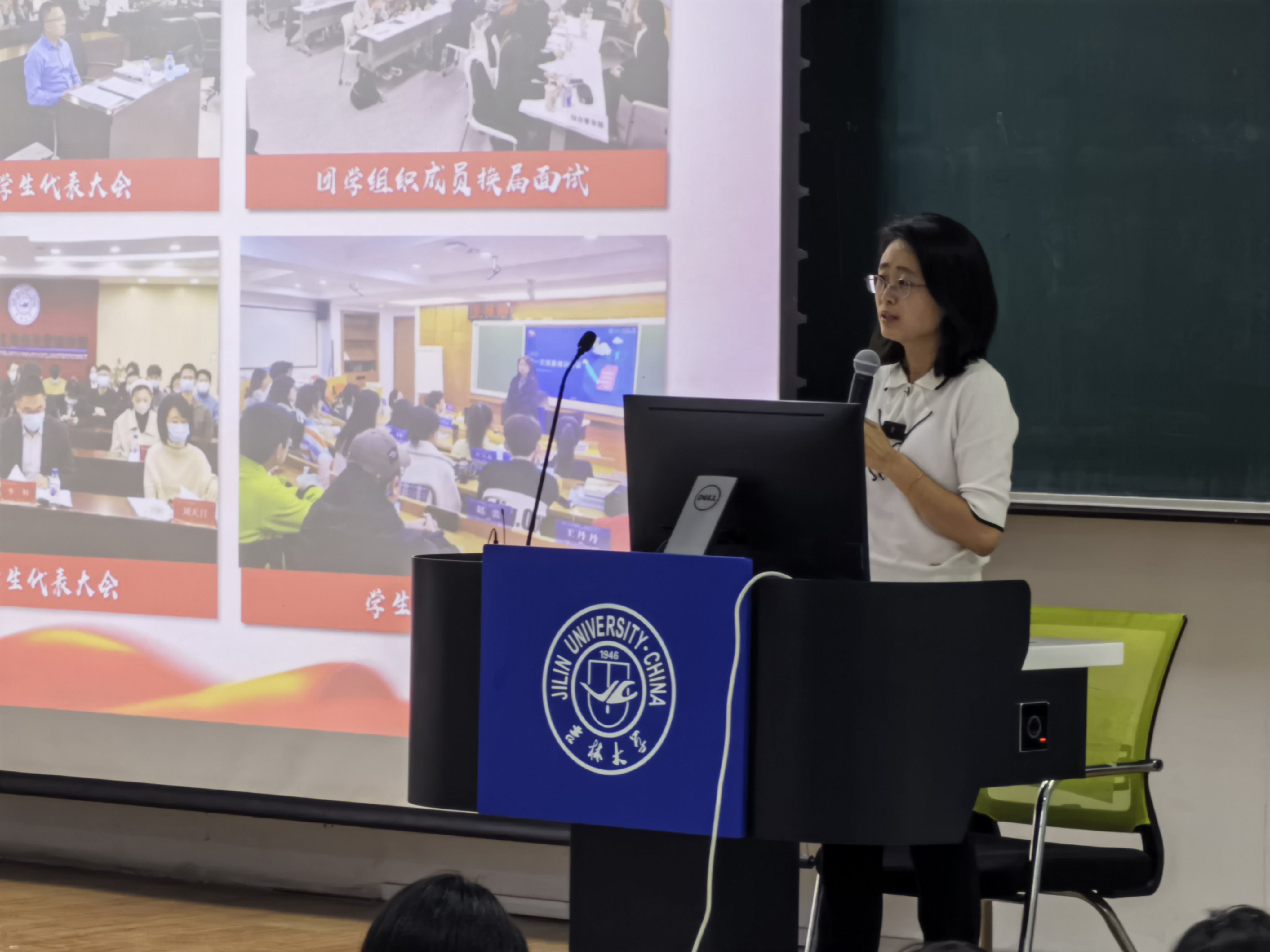 的四大团学组织职能,鼓励新生们在未来团学组织招新时踊跃参加;第三部分:强化服务兴团,做到服务青年有力;第四部分:聚焦文化荣团,做到拓展青年有力。在讲解完主要内容之后,刘天目强调了青年大学习的重要性,提醒同学们在学习专业知识之余不要忘记对团课的学习,并鼓励同学们积极报名参与学科竞赛。最后,刘天目老师为2023级新生详细的讲解了团员的发展流程以及发展团员的注意事项,并鼓励还未入团的同学们踊跃报名入团,向团组织积极靠拢,贡献自己的一份力量。刘老师希望同学们在新学期、新起点、新征程敢想敢为,又善做善成,立大志,肯奋斗,肯奉献,在大学四年实现青春梦想。