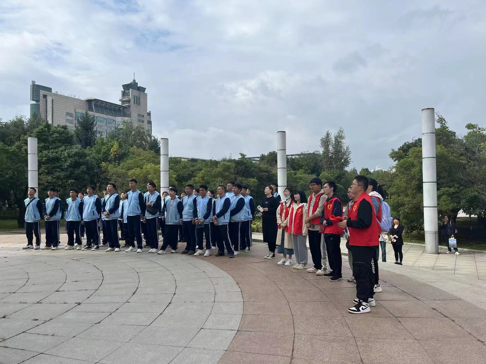 初三及高一的学生来到校前卫南区进行参观学习。