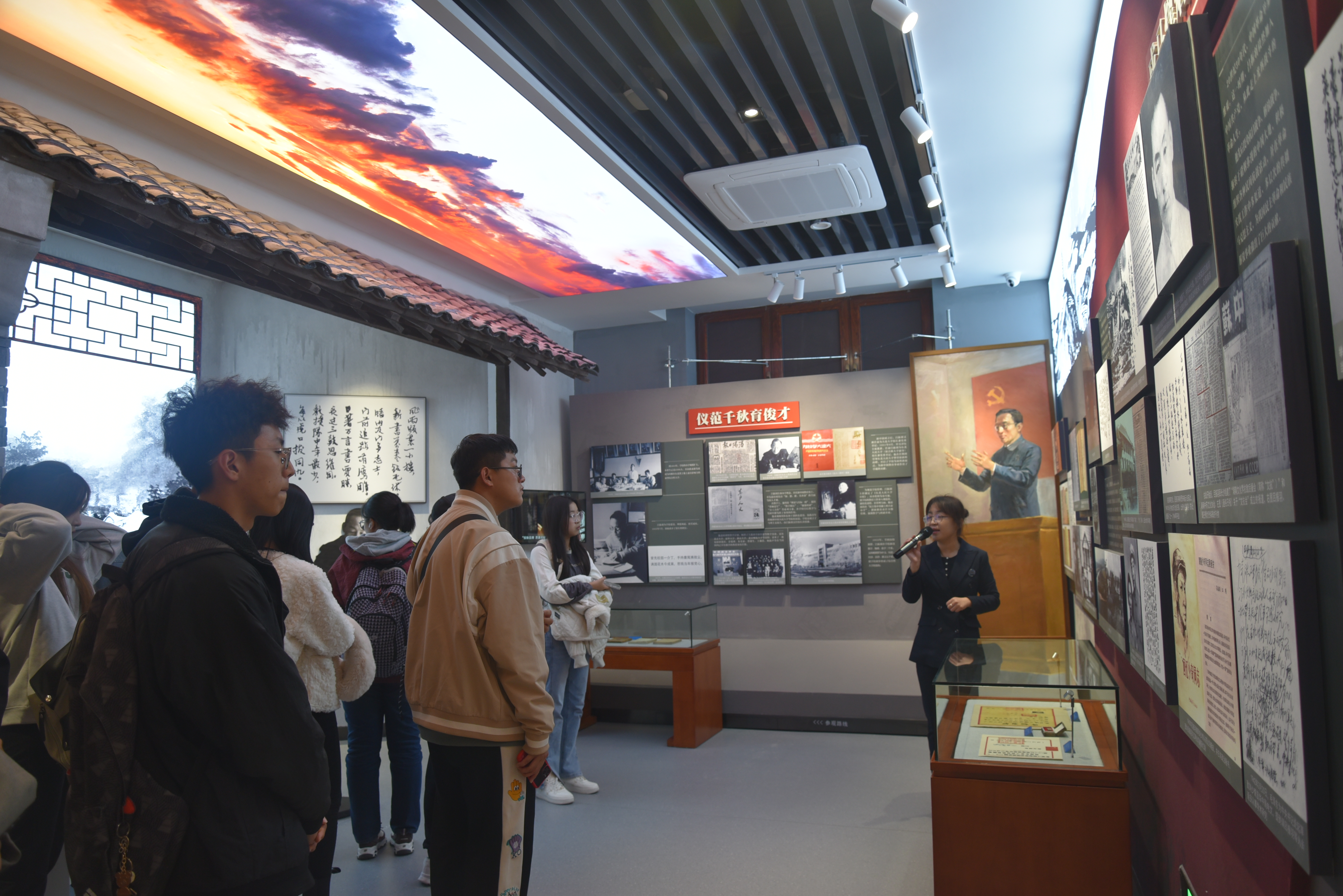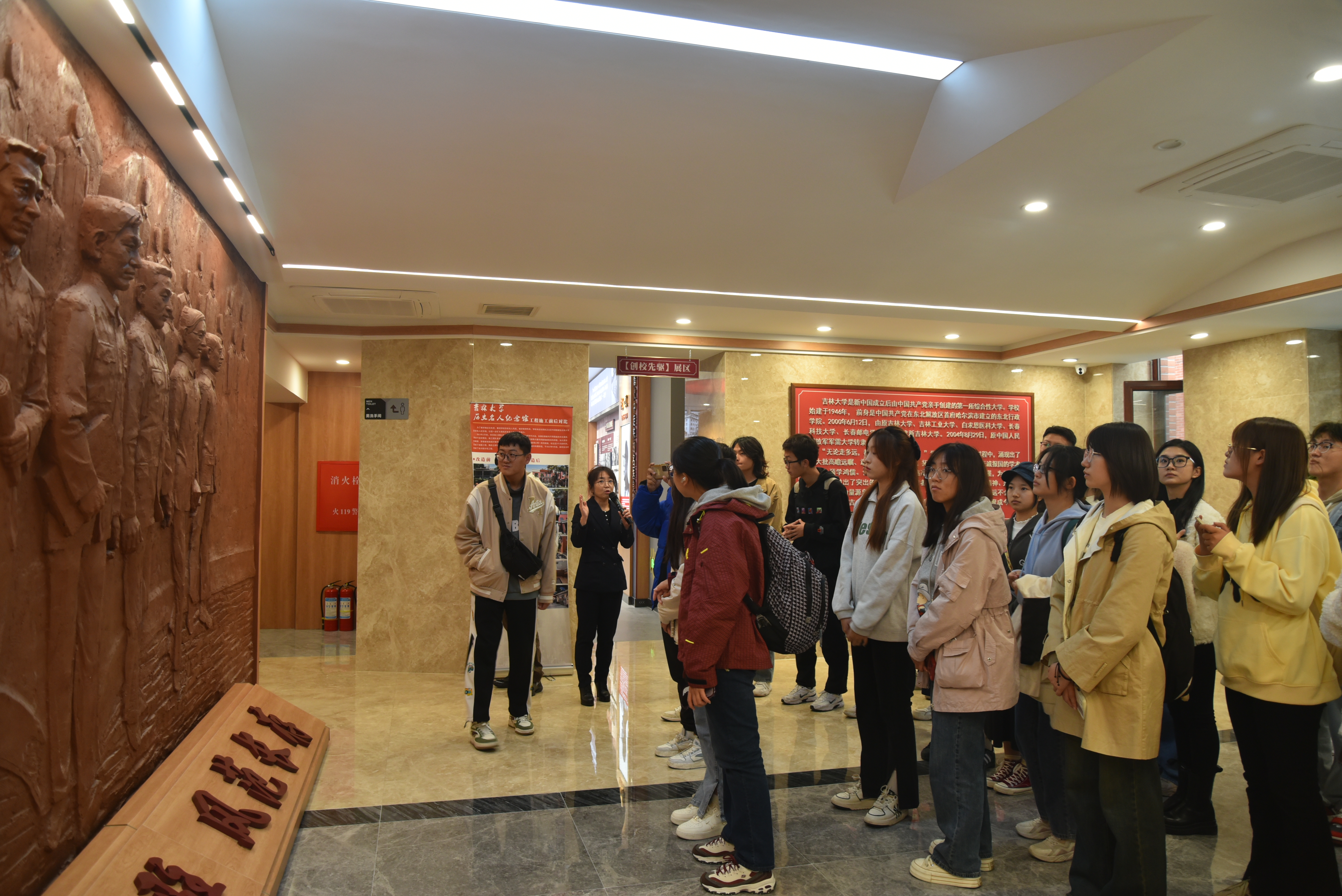 名人纪念馆后,在讲解员的带领下,同学们依次进入场馆。纪念馆外观大气稳重、空间布局合理、陈列布展内容丰富。同学们参观了“创校先驱”、“功昭校史”、“滋兰树慧”等展区,展区记录展示了林枫、饶斌、江一真、李四光、陈先舟、任抟九等64位拓业先贤,为冰球突破