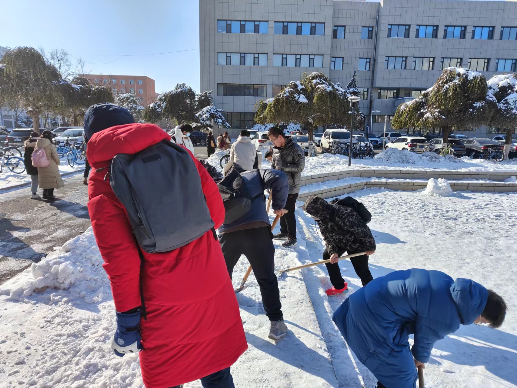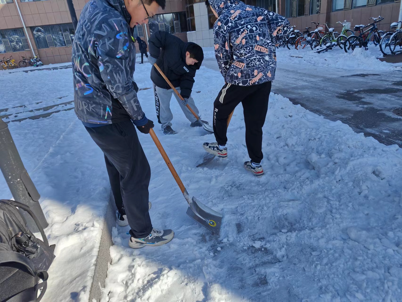 积极组织学生参与清雪活动。2023年11月11日,冰球突破
