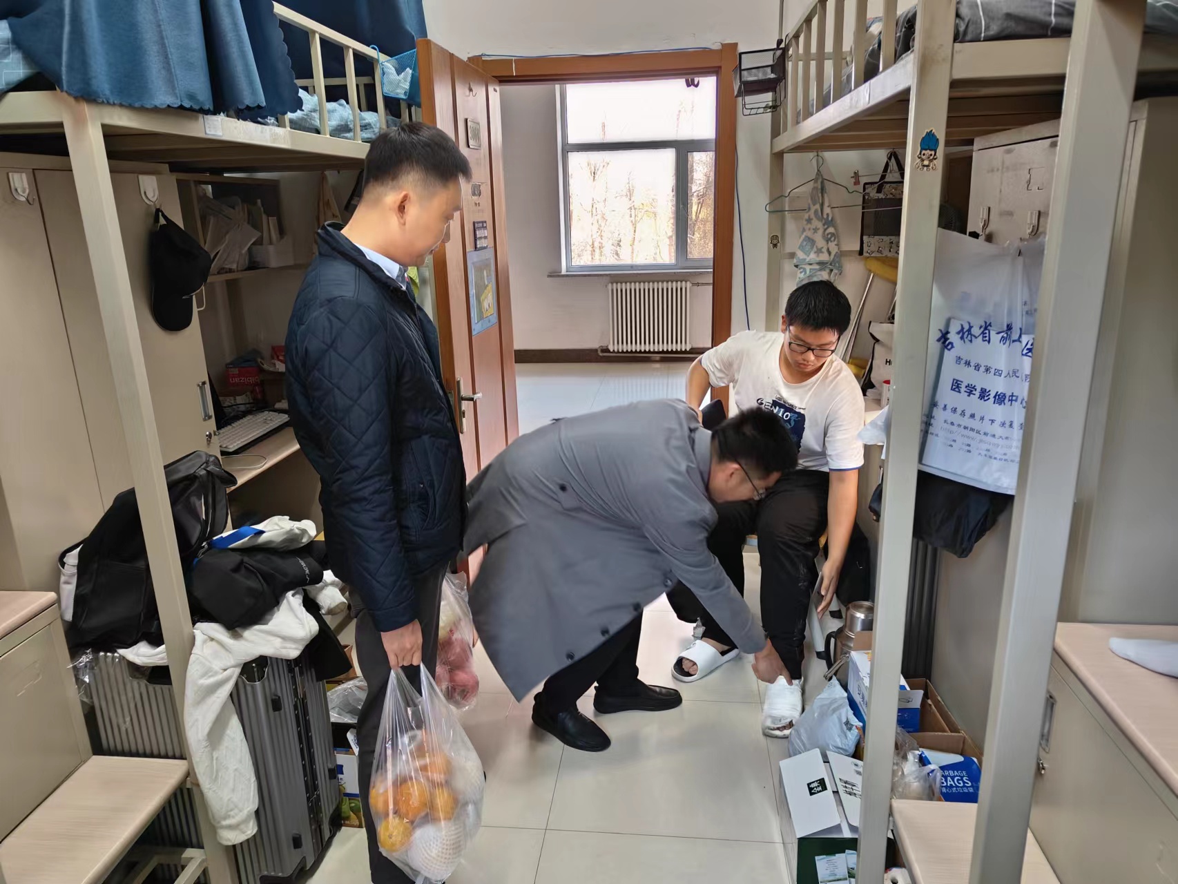 在查寝过程中,老师们与同学们进行了深入的交谈。走访宿舍时,李帅书记逐一询问了同学们的近况,同时也对大家近期的学习情况和身体状况进行了详细的了解,叮嘱大家一定要珍惜美好的学生时代,刻苦学习专业知识,努力做一个对社会有贡献的人。查寝时,老师们特地探望了2023级崴脚骨折的李思远同学,关切地询问了李思远同学的伤情,嘱咐他好好养伤,并祝愿他早日康复。