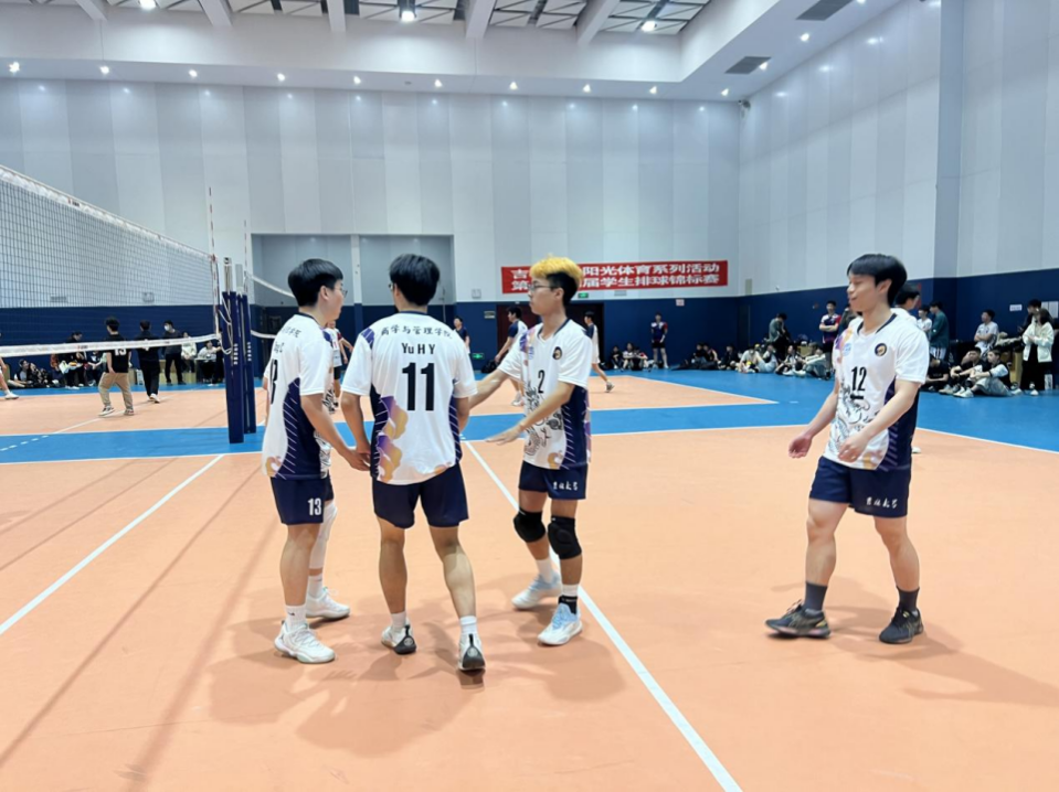 排球队凭借卓越的团队配合和精湛的球技,商管学子们充分展现了他们顽强拼搏的风貌,彰显了团结协作、奋勇争先的精神风貌,经过激烈的角逐,他们成功以小组第一的身份晋级。
