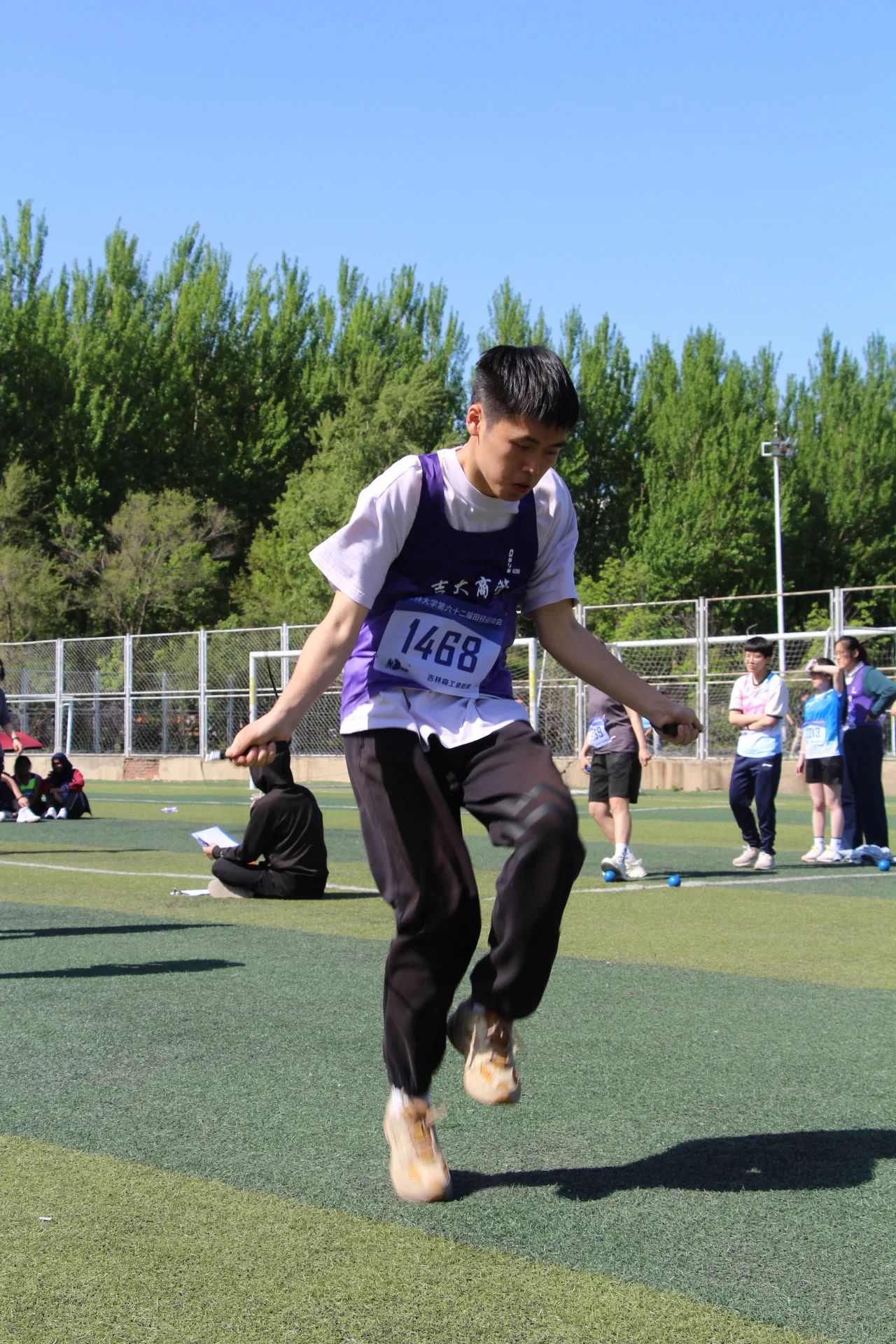 另一边的决赛赛场上,随着裁判员一声哨响,男子1分钟定点投篮决赛开始了!商管健儿们身轻如燕、敏捷如豹,最后海那尔夺得第四名,其他同学也获得了不错的成绩。男子跳远决赛战况同样激烈,商管健儿以最灵敏的身姿,奋力一跃,势如破竹、锐不可当,均取得了佳绩。