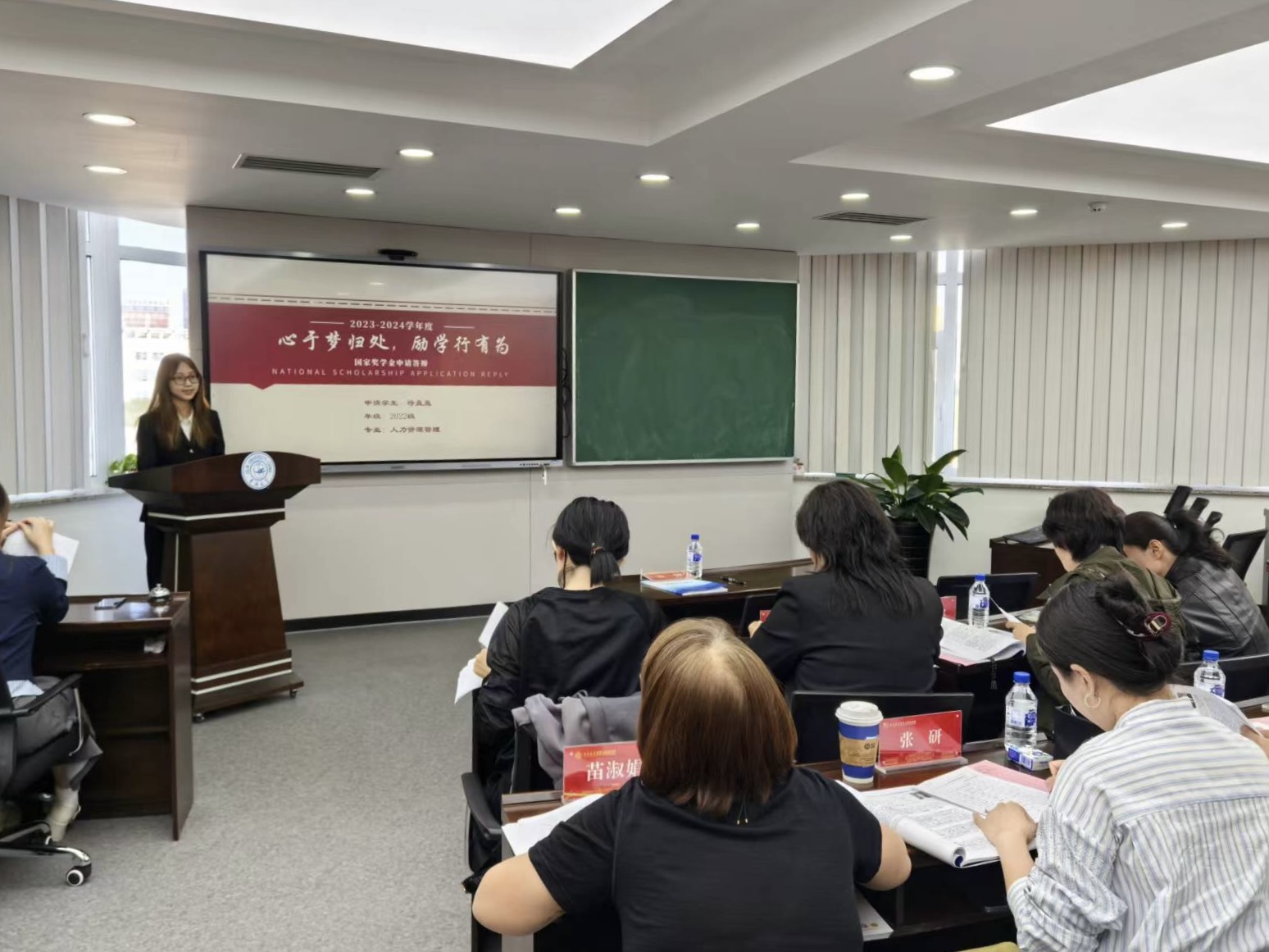 国家奖学金答辩评审会组织严谨,程序规范。由党委书记赵军、党委副书记兼副院长李帅、各系主任、系书记、学生工作办公室老师以及本科学生代表等组成的评审工作小组,负责本次国家奖学金答辩评审会。