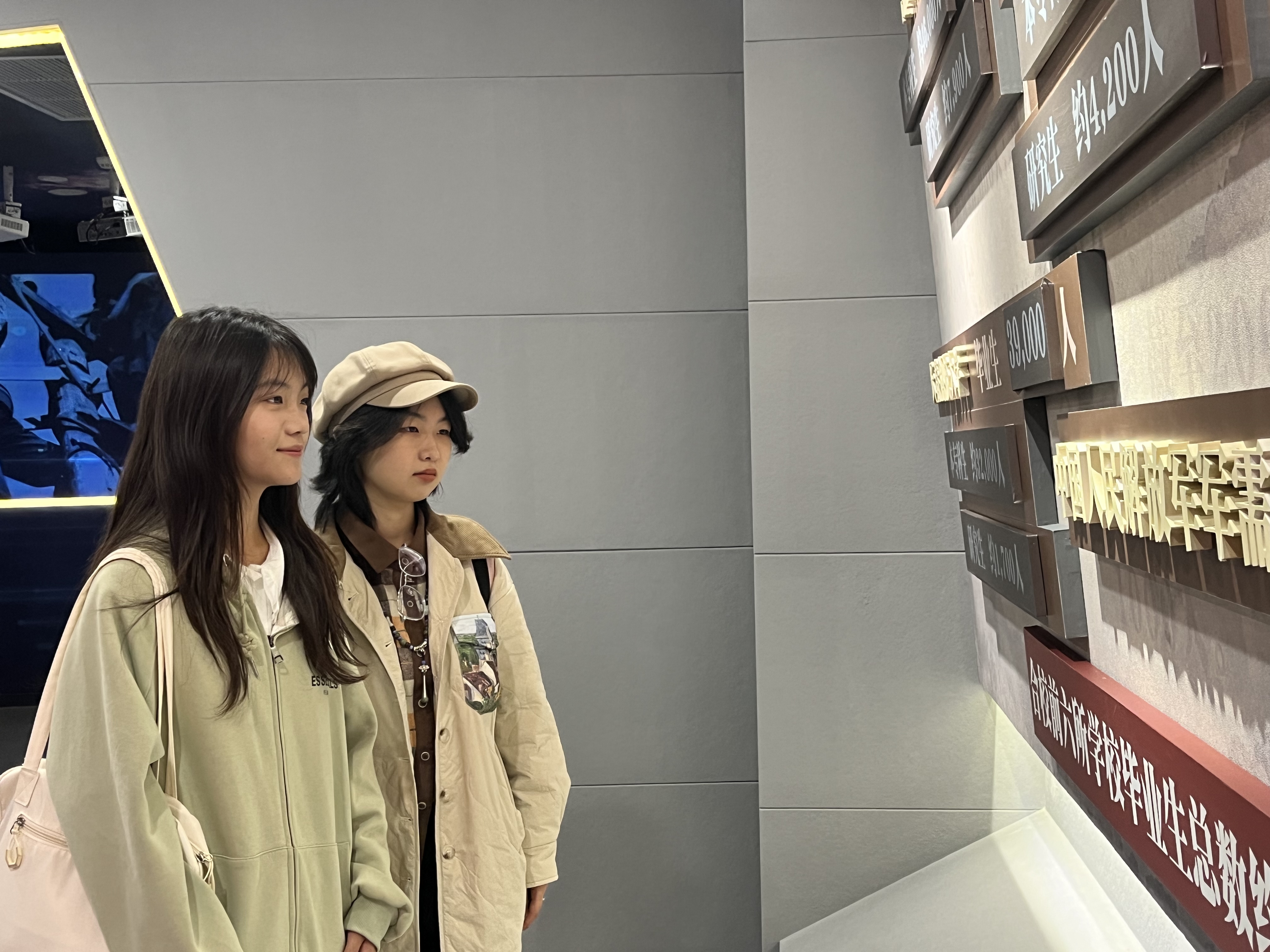 同学们首先来到校史馆的序厅,“求实创新,励志图强”的校训跃然眼前,通过LED显示屏的影像资料,同学们学习了校训、校徽的深刻含义以及校歌的创作背景。伴随着振奋人心的校歌旋律,同学们穿过时空隧道,依次游览了“光辉岁月”“继往开来”“杏坛翘楚”“星光璀璨”等多个展区,了解了冰球突破