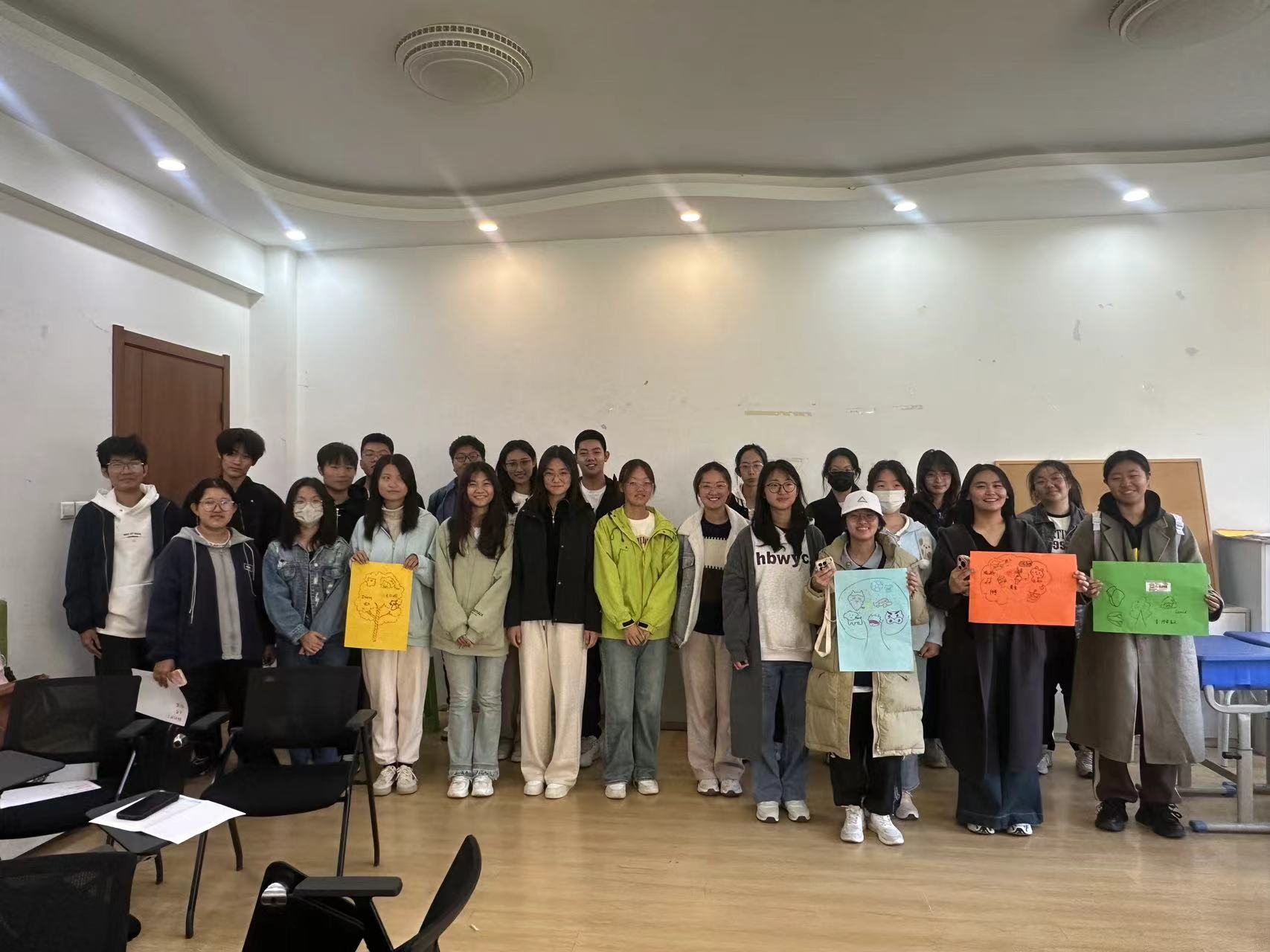 委员会心理部于10月11日-10月15日期间举办了2024级新生团体心理辅导活动。活动大体分为三个部分:热身阶段、过渡阶段与结束阶段。首先各班心理委员向同学们简单介绍本次活动的主体和内容,之后开始游戏。热身阶段的游戏有“一分钟鼓掌”“我知道”等,活跃气氛,增加各团队成员间的熟悉度,有利于后续活动的展开。过渡阶段包括“集体登陆”“信任之旅“”人体字母“”快乐传递“”信心启迪”等,促进团队成员间的情感交流,同学们逐渐发现自己的长处和优点,更好地认识和评价自己,学会互相激励、互相欣赏。最后,同学们合作绘制一幅“团体树”,在《相亲相爱一家人》背景音乐的陪伴下,在同学们的欢声笑语中,此次活动落下帷幕。