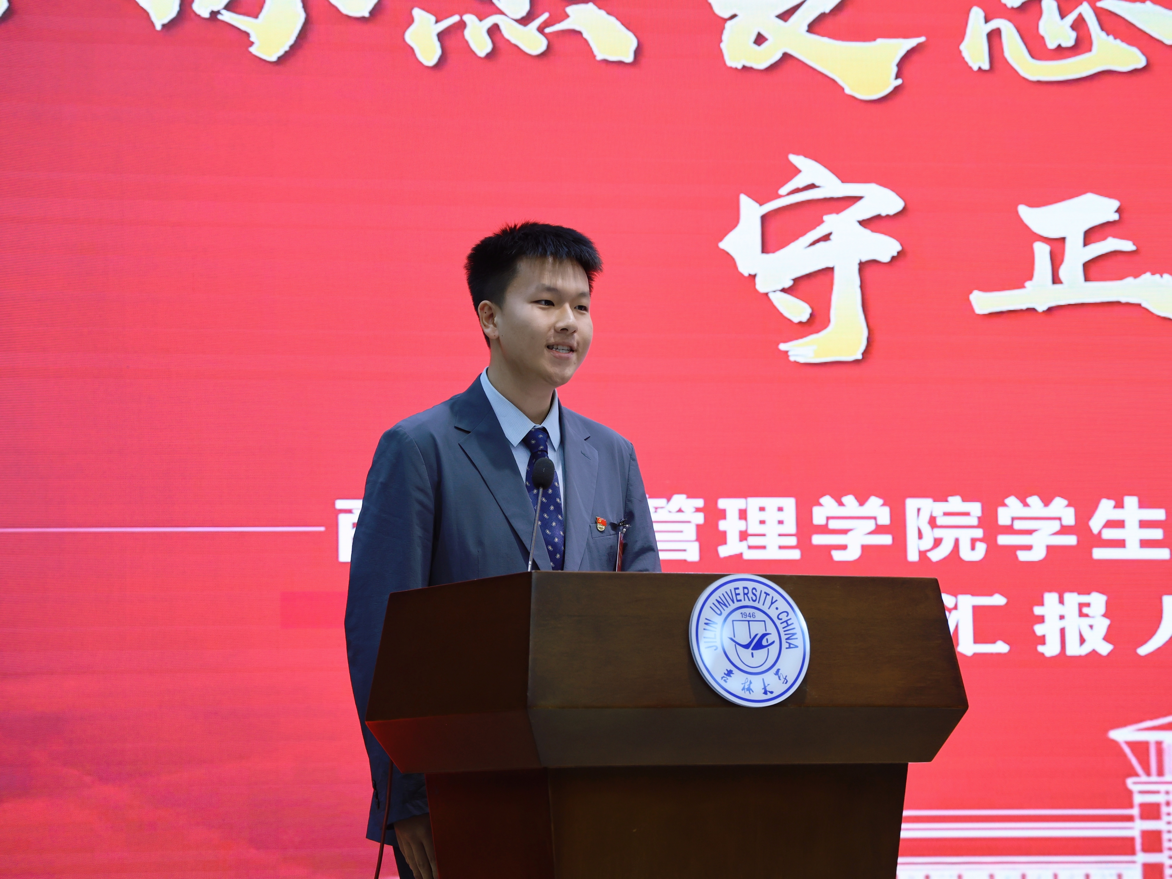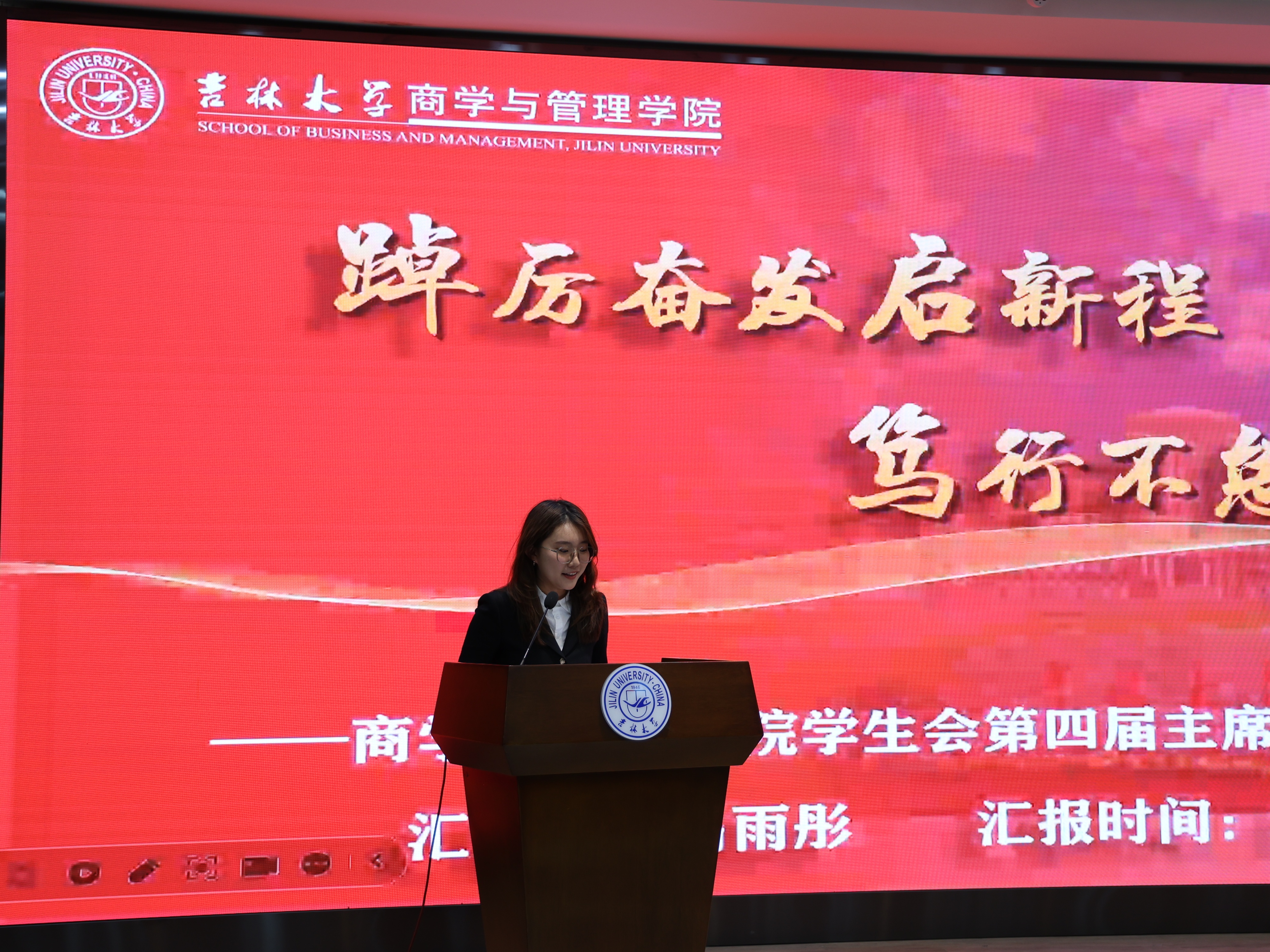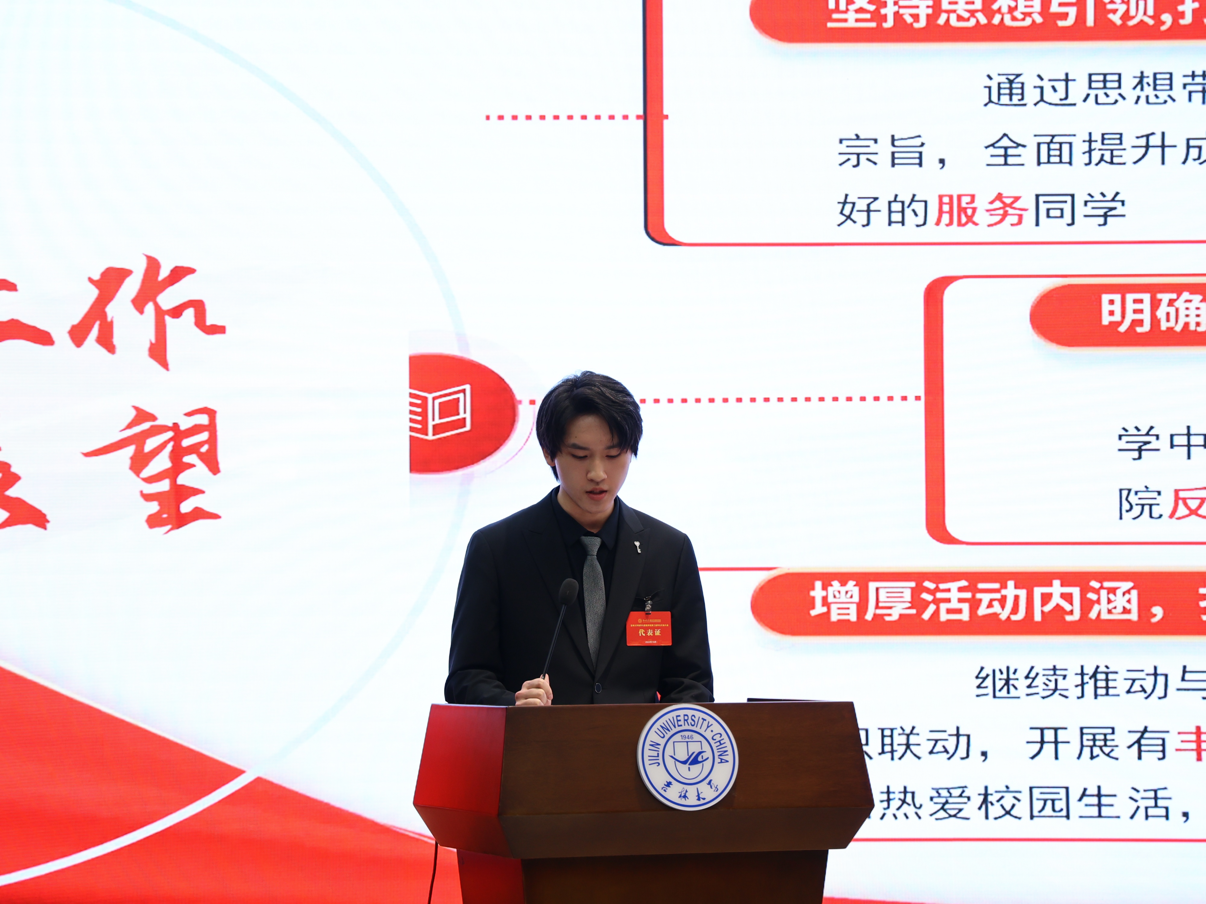 第四届学生会主席团成员。姜鹄代表第四届学生会主席团发言。他代表学生会组织表示,要在未来的工作中踔厉奋发、勇毅前行,以改革创新的理念推动冰球突破