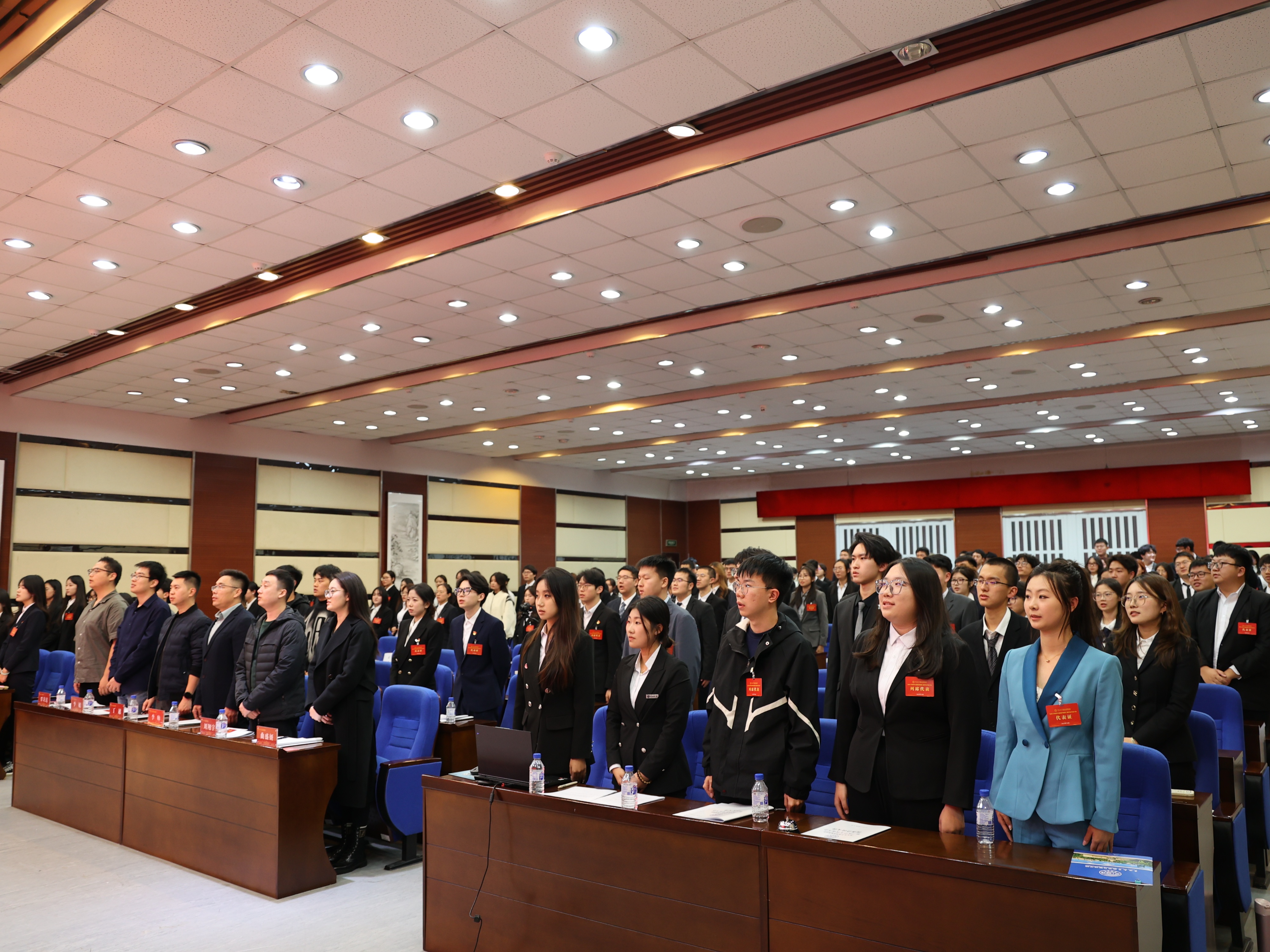 党委副书记兼副院长李帅老师作总结发言,李帅老师指出学生会成员要以学业为先,服务为本,成长成为一名能扛大梁、担大任的新时代青年。新一届学生会要紧紧围绕中心,自觉服务大局,为中国式现代化贡献青春力量。大会在全体代表高唱共青团团歌的歌声中落下帷幕。