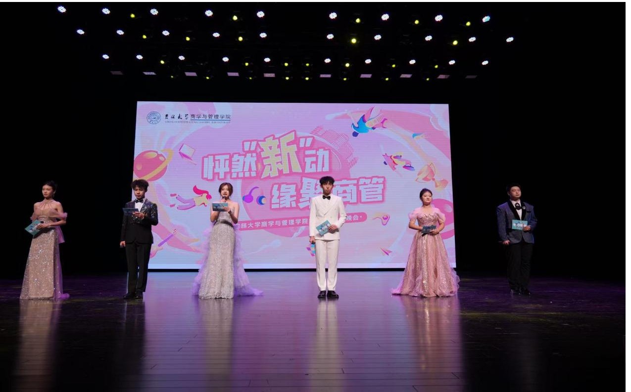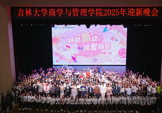 “怦然‘新’动,缘聚商管”2025年迎新晚会在鼎新大讲堂举行。冰球突破