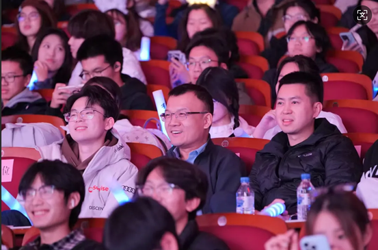 党委副书记兼副院长马腾老师,学生工作办公室主任兼2025级辅导员丁越老师,2025级辅导员刘家邦老师,2023级团学组织主要学生干部及新生辅导员助理与2025级新生及部分新生家长共同观看演出。