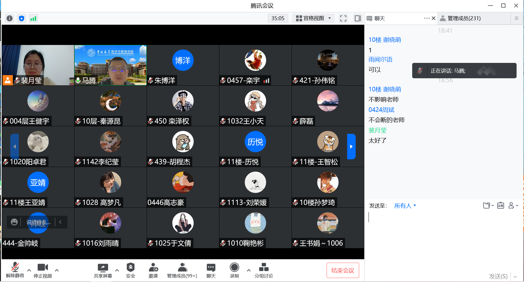党委副书记马腾老师和研究生辅导员甄宓老师参会。本次会议主要对目前疫情防控形势、日常行为规范、违纪处理办法和常态化工作开展要求进行传达。
