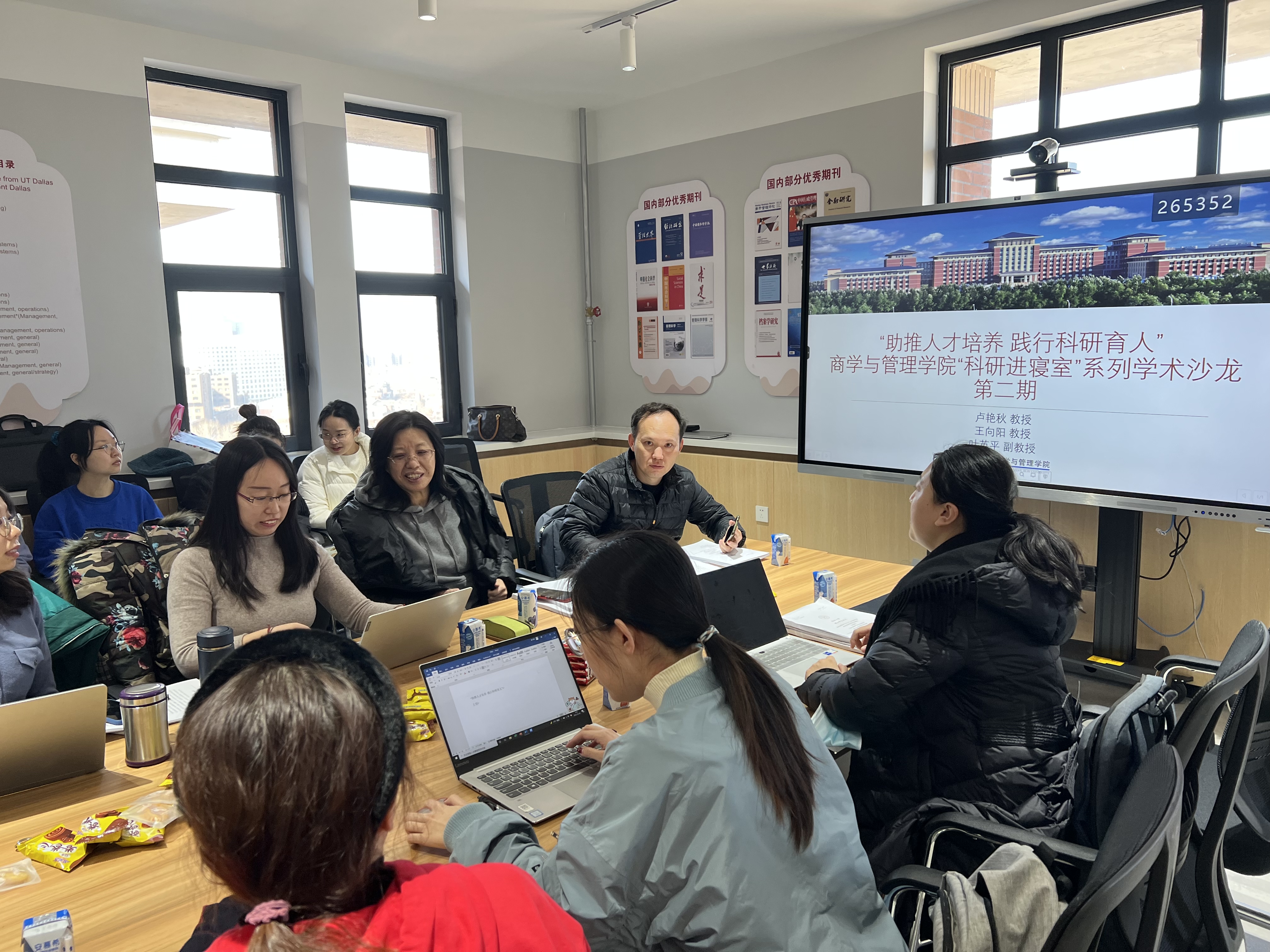 研管办邀请工商管理专业卢艳秋教授与王向阳教授团队,在北苑四公寓东区11楼学术沙龙举办了博士学位论文预答辩研讨活动。辅导员甄宓老师一同参加此次研讨。