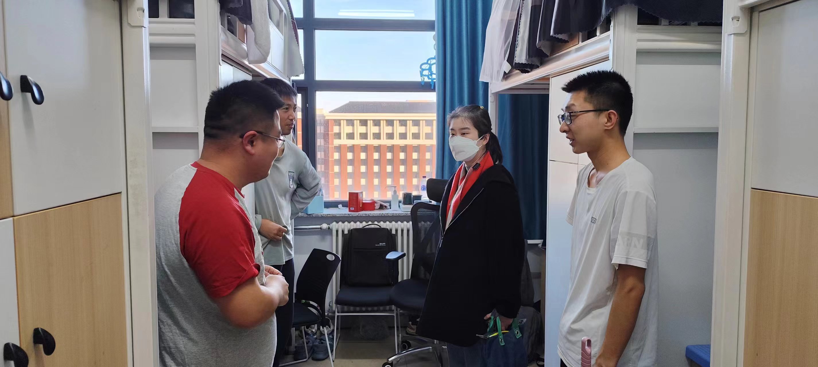 为了保证查访的效果,本次对北苑三公寓和北苑四公寓进行了随机抽查,在寝室走访过程中,老师们提醒大家一定要关注安全问题,并为同学们进行了安全知识的宣讲,包括注意寝室用电安全、财产安全、防火安全,禁止使用违禁电器及明火,离开时要及时锁门等。