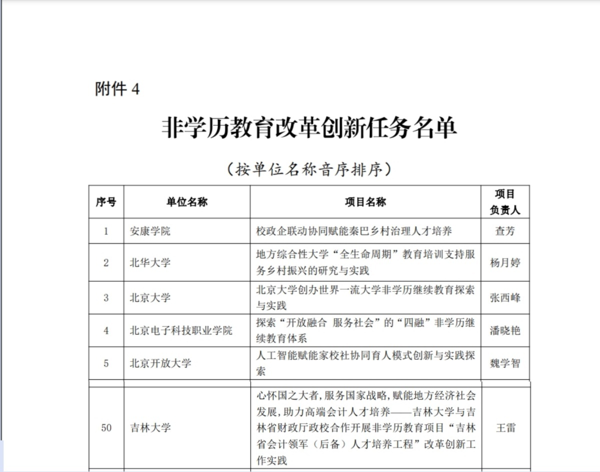 成功入选非学历继续教育教学改革创新任务培育建设名单。