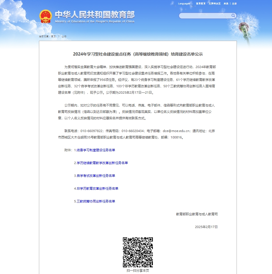 近日,教育部2024年学习型社会建设重点任务(高等继续教育领域)培育建设名单正式公示,冰球突破